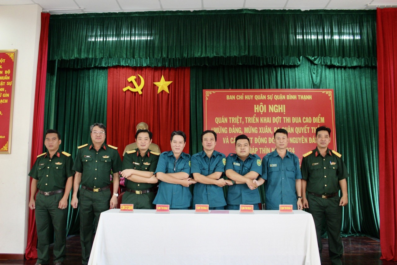 Các cơ quan, đơn vị trong LLVT quận ký kết thi đua.