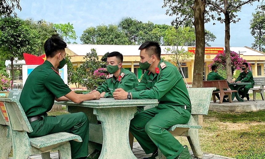 Sáng chủ nhật, từng nhóm chiến sĩ Đại đội 5, Tiểu đoàn 2, Lữ đoàn 434 ngồi trò chuyện tại khu vui chơi của đơn vị. Cán bộ đại đội, trung đội cũng nhập cuộc, hòa đồng, trò chuyện vui vẻ. Dẫn chúng tôi tới vị trí nhóm chiến sĩ đang ngồi xung quanh một cán bộ đại đội, Đại úy Đàm Văn Lộc, Chính trị viên Tiểu đoàn 2 giới thiệu: “Đơn vị vừa tham gia diễn tập bắn đạn thật. Những chiến sĩ này đều là pháo thủ của khẩu đội pháo lựu 105mm bắn đạn thật đạt giỏi. Bản lĩnh vững vàng lắm anh ạ!”.