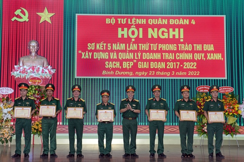 5 năm qua, Quân đoàn 4 lãnh đạo, chỉ đạo các cơ quan, đơn vị trong toàn Quân đoàn thực hiện tốt Phong trào thi đua “Xây dựng và quản lý doanh trại chính quy, xanh, sạch, đẹp”. Qua đó, tạo ra giá trị vật chất to lớn trong xây dựng, cải tạo sửa chữa doanh trại, quản lý đất Quốc phòng, quản lý sử dụng điện nước tiết kiệm an toàn, hiệu quả; trong mua sắm doanh cụ, làm đường nội bộ, tạo cảnh quan môi trường. Bên cạnh đó phong trào thi đua “Xây dựng và quản lý doanh trại chính quy, xanh, sạch, đẹp” đã góp phần củng cố môi trường nếp sống văn hóa, thực sự nâng cao chất lượng cuộc sống cả về vật chất lẫn tinh thần cho bộ đội, góp phần xây dựng đơn vị chính quy, rèn luyện kỷ luật, xây dựng đơn vị vững mạnh toàn diện.