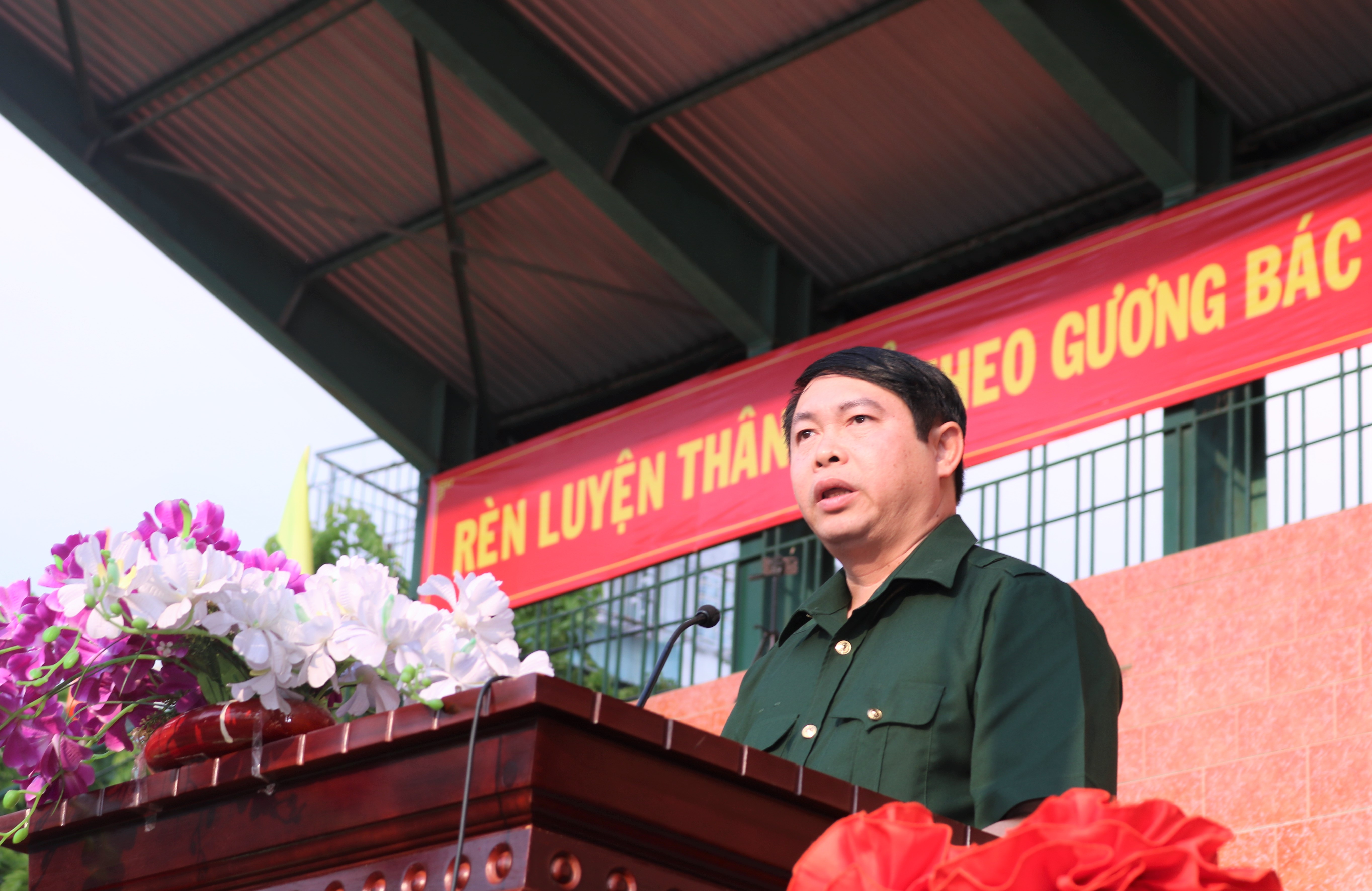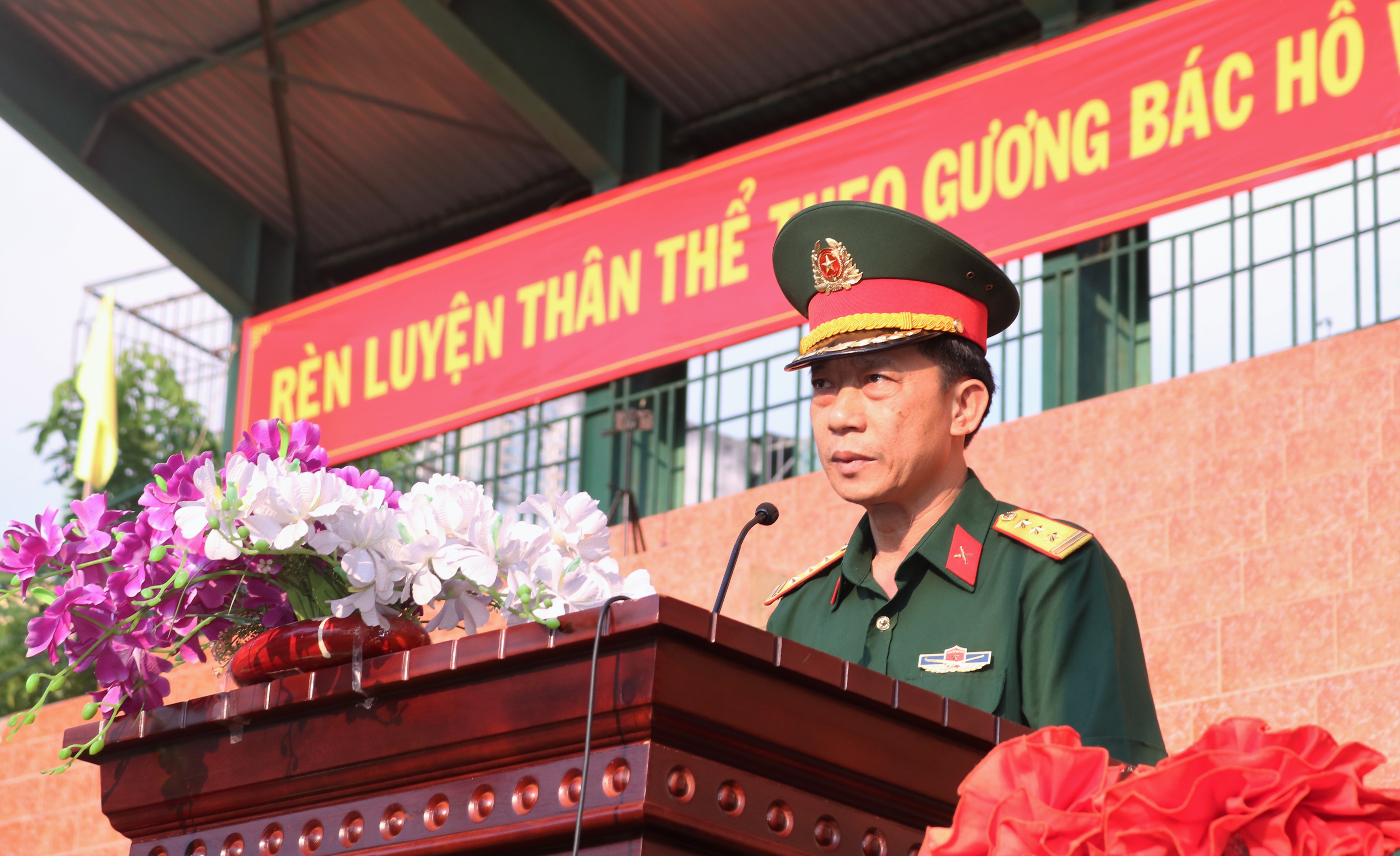 Thượng tá Trần Văn Quyết, Chỉ huy trưởng Ban CHQS quận phát biểu khai mạc hội thao.