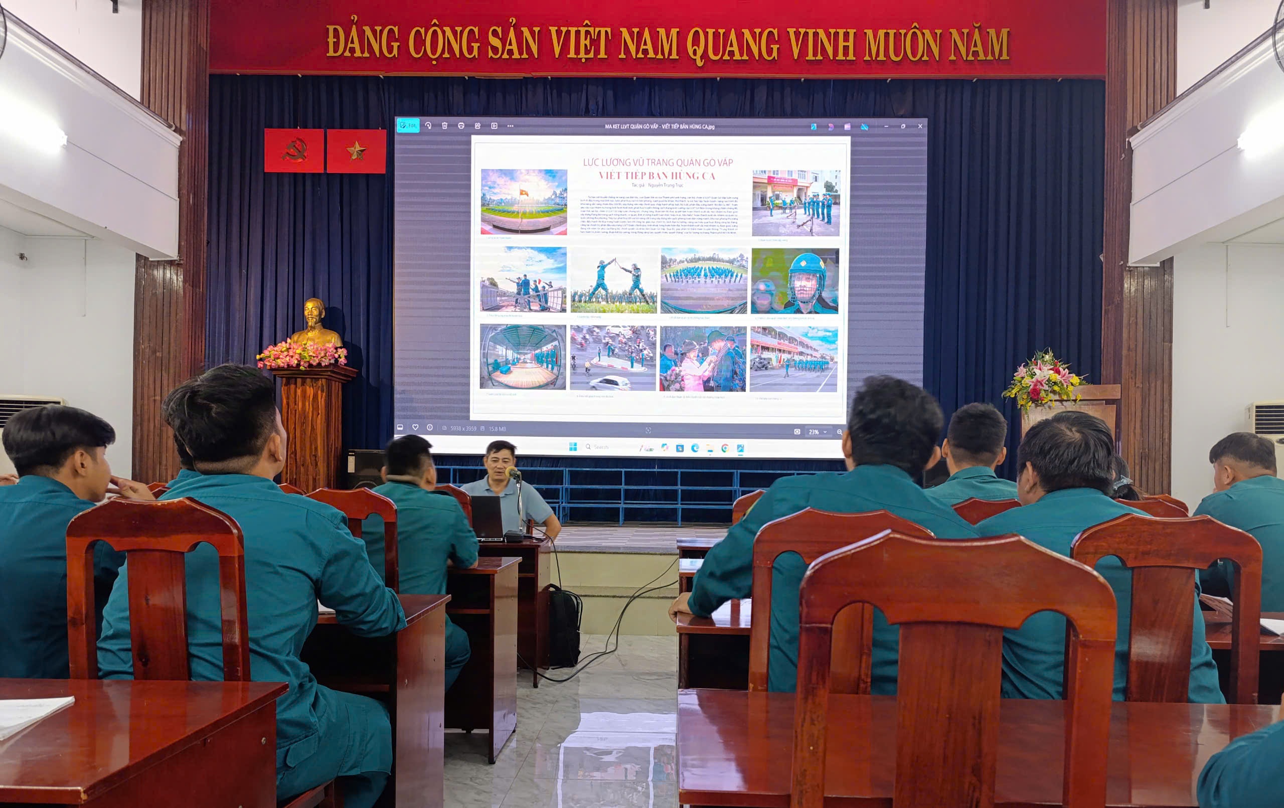Tại buổi tập huấn, cán bộ, chiến sĩ LLVT quận đã được nghe Nhà báo, Nghệ sĩ nhiếp ảnh Nguyễn Trung Trực, Thường trực Cục Tuyên huấn phía Nam báo cáo khái quát về các loại hình báo chí; tiếp cận với cách phân loại các loại hình báo chí phổ biến hiện nay; chia sẻ, hướng dẫn cách viết một bản tin hoàn chỉnh, chụp hình, quay phim tài liệu; hướng dẫn cách tiếp cận thông tin phục vụ công tác tuyên truyền trong và ngoài LLVT. Trọng tâm buổi tập huấn hướng đến việc thực hành tiếp cận nguồn tin, biên tập bản tin. Đồng chí báo cáo viên đã hướng dẫn cách thức chụp ảnh bằng điện thoại thông minh có hiệu quả, chú trọng cách viết các thể loại tin bài có sức lan tỏa sâu rộng như gương người tốt việc tốt, đơn vị mẫu mực, tiêu biểu...