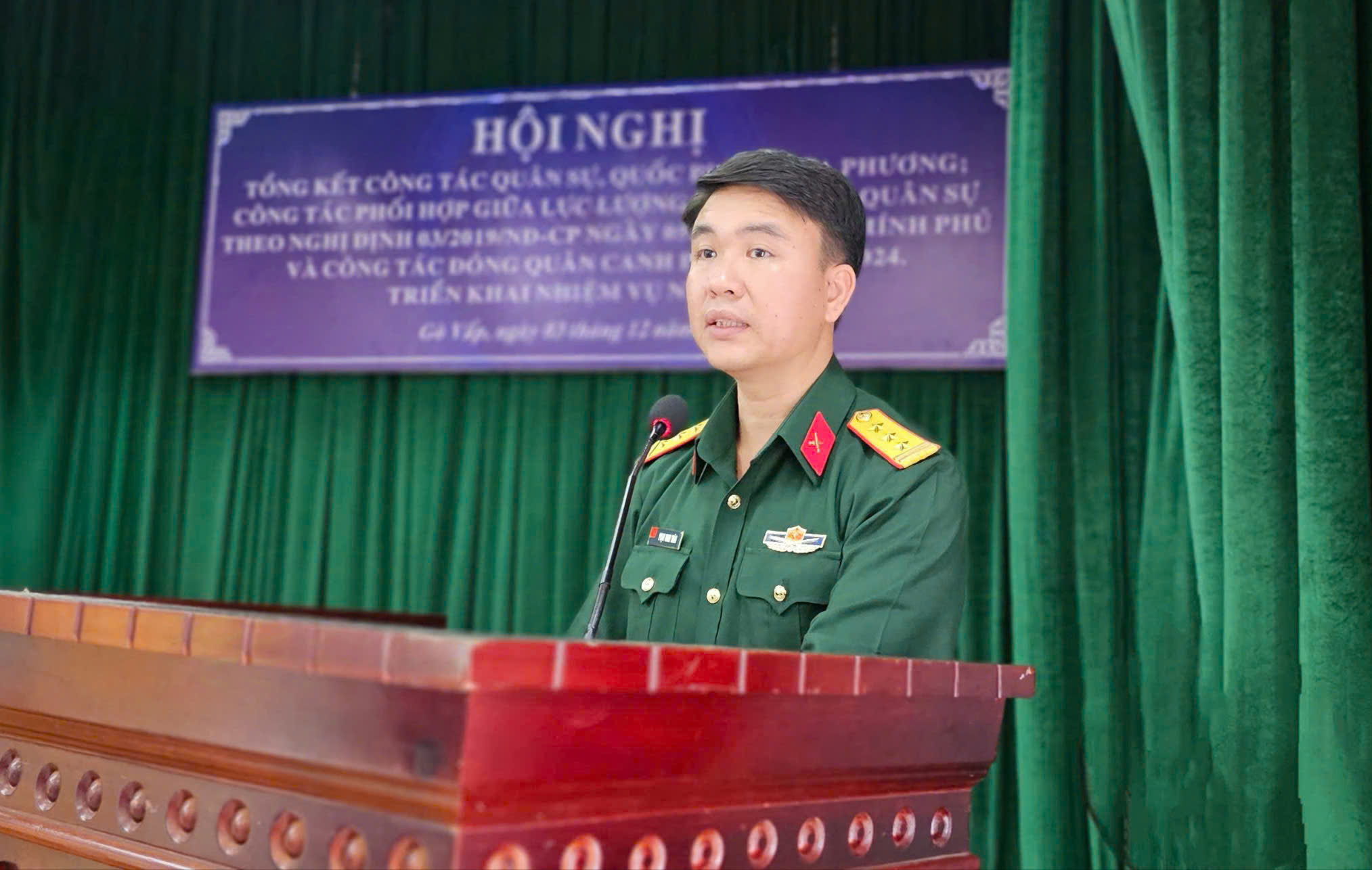 (QK7 Online) - Ngày 3/12, Ủy ban Nhân dân (UBND) quận Gò Vấp tổ chức Hội nghị Tổng kết công tác quốc phòng – quân sự địa phương, công tác phối hợp theo Nghị định số 03 của Chính phủ (NĐ03), công tác đóng quân canh phòng năm 2024 và triển khai nhiệm vụ năm 2025. Dự và chủ trì Hội nghị có đồng chí Nguyễn Trí Dũng, Phó Bí thư Quận ủy, Chủ tịch UBND quận và các đồng chí trong Thường vụ Quận ủy; Bí thư, Chỉ huy trưởng Ban CHQS 16 Phường.