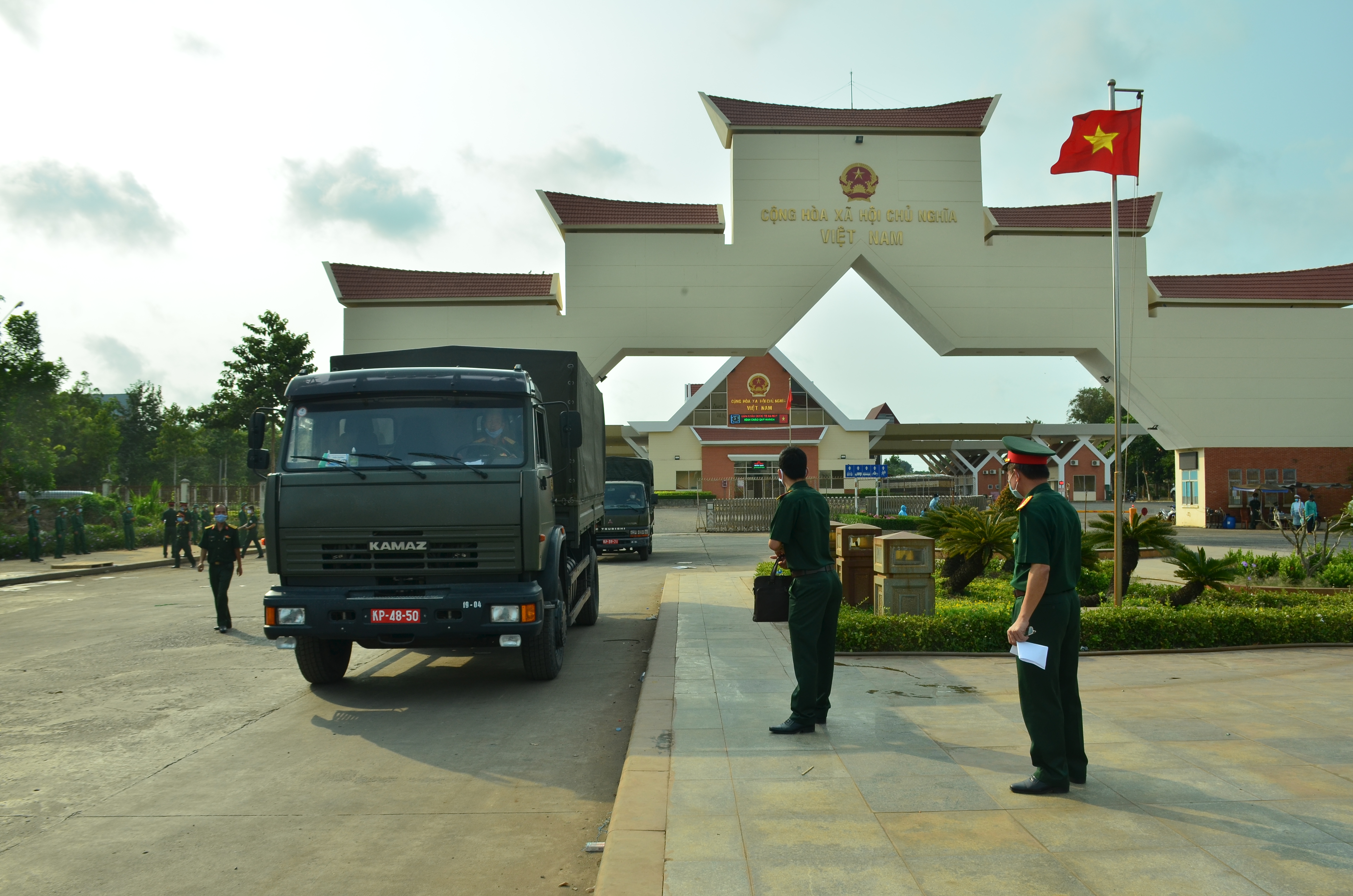 Xe chở vật chất, trang bị y tế qua cửa khẩu Xa Mát