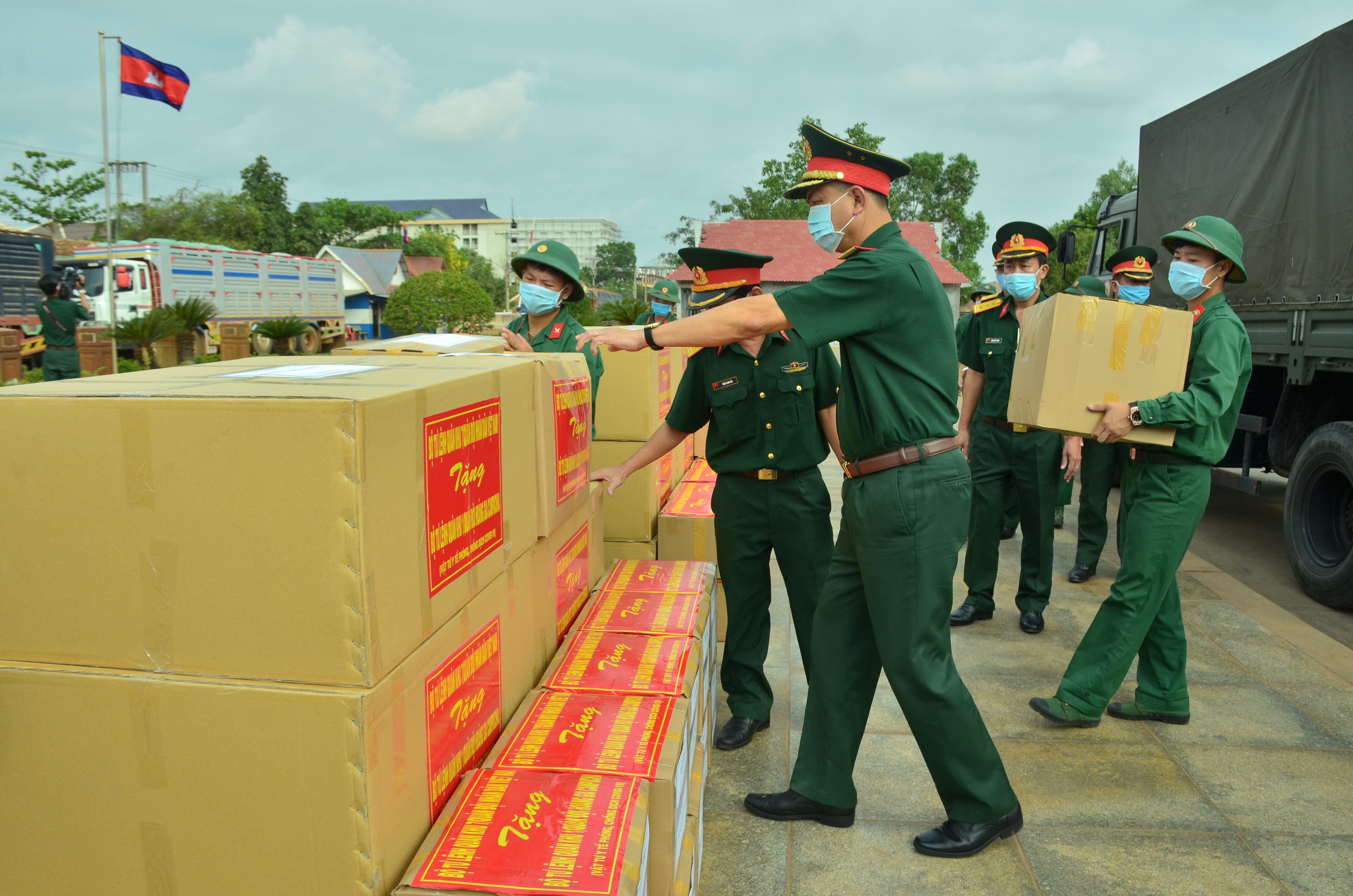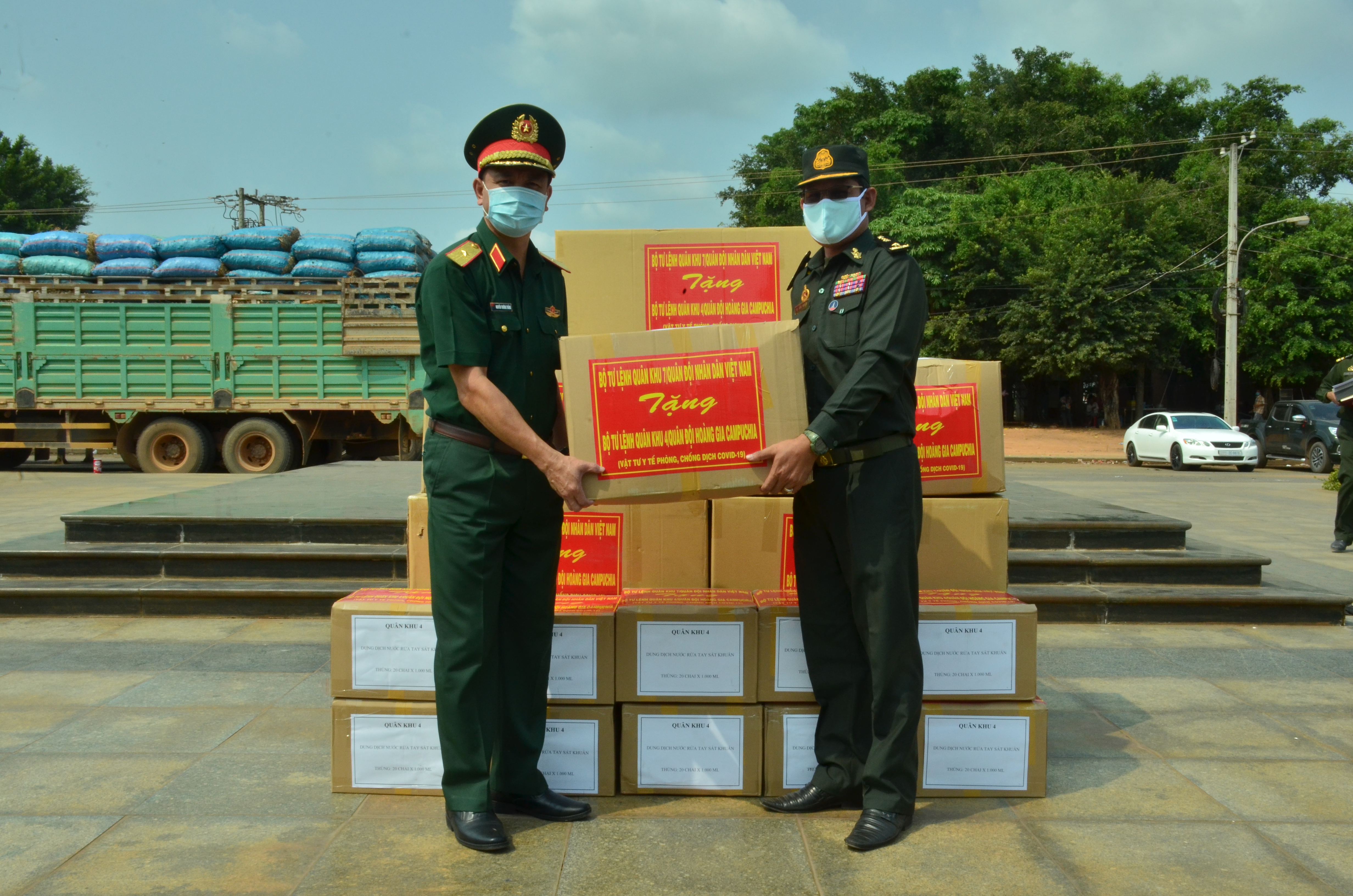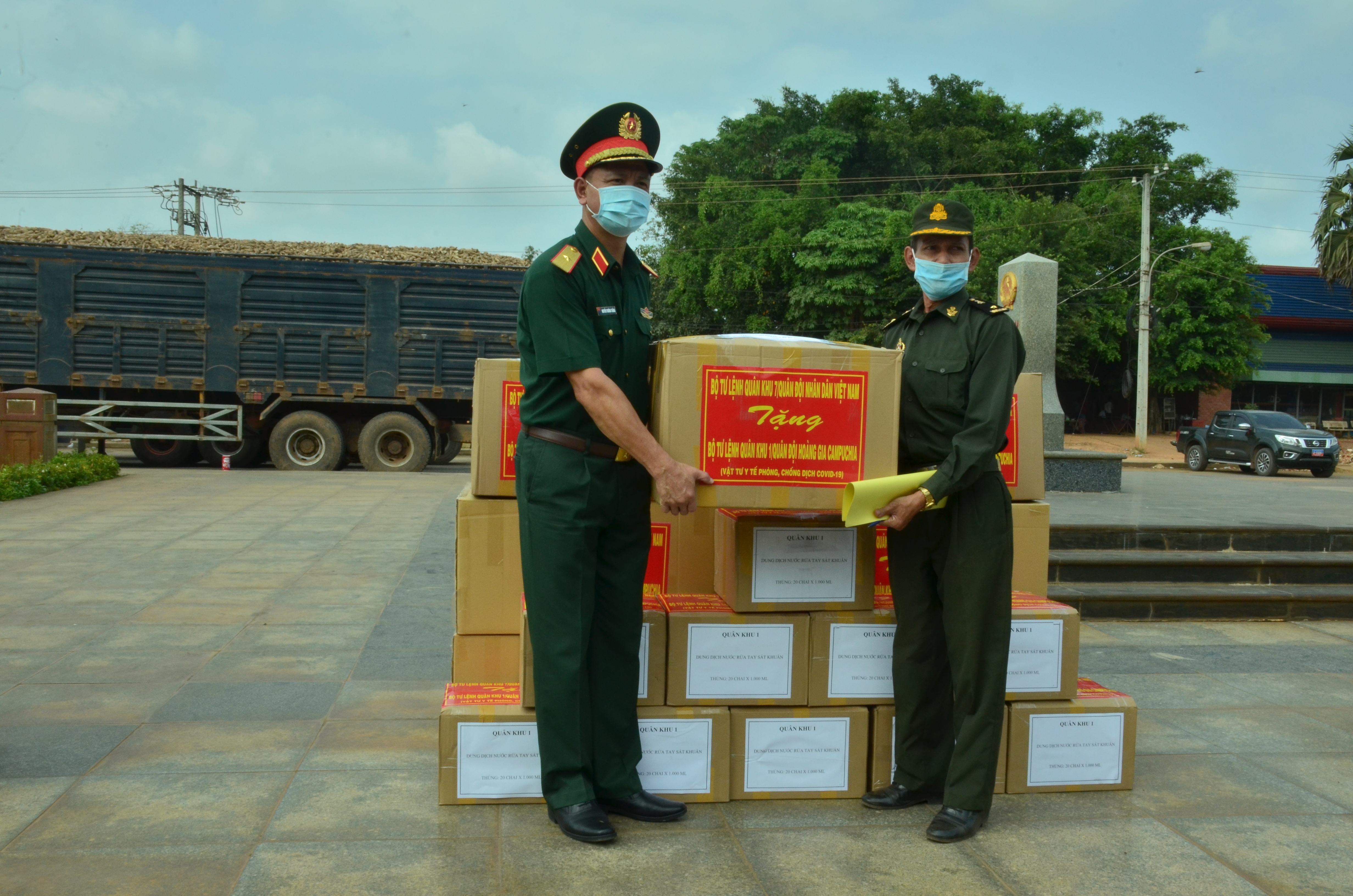Các vật chất, trang bị y tế gồm: 50.000 khẩu trang; 1.000 chai dung dịch sát khuẩn (loại 1 lít/chai); 1.000 bộ đồ bảo hộ y tế; 200 kg cloramin B; 50 thùng cá hộp và 50 thùng lương khô. Bộ Tư lệnh Quân khu cũng gửi tặng bà con Việt kiều Campuchia 30.000 khẩu trang y tế và 500 triệu đồng để phục vụ công tác phòng chống dịch bệnh Covid - 19.