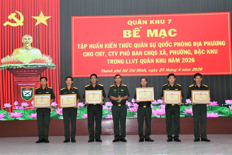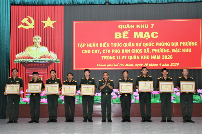 Sau 2 đợt tập huấn (từ ngày 5/4 đến ngày 25/4/2026), với tinh thần nghiêm túc, trách nhiệm, lớp tập huấn đã hoàn thành toàn bộ nội dung, chương trình đề ra, bảo đảm chất lượng, thiết thực, bám sát yêu cầu nhiệm vụ quân sự, quốc phòng ở cơ sở. Lớp tập huấn đã trang bị những kiến thức về chính trị, quân sự, quốc phòng địa phương, công tác hậu cần, kỹ thuật... cho Chỉ huy trưởng và Chính trị viên phó Ban CHQS xã, phường, đặc khu trong LLVT Quân khu.