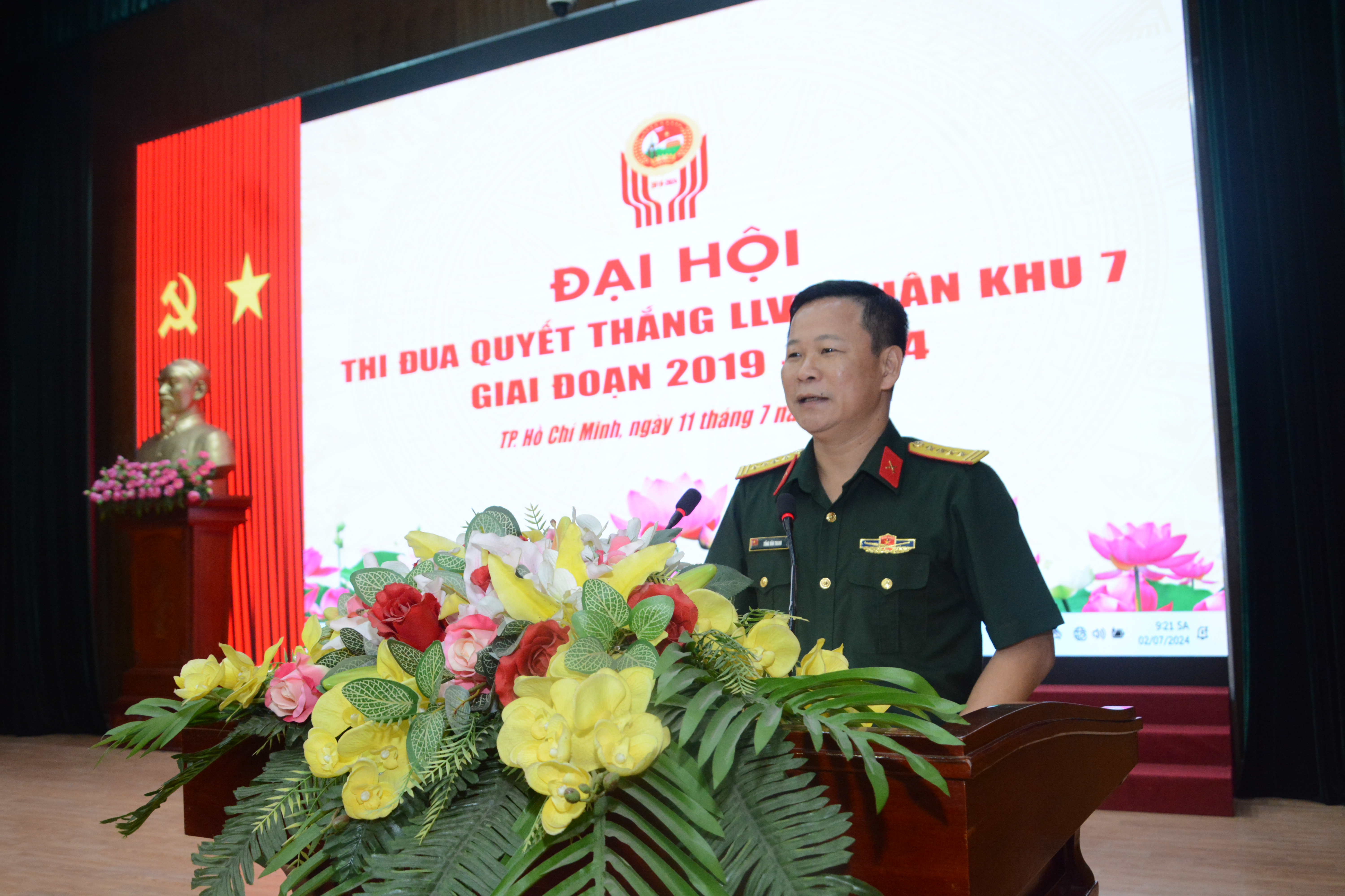 Phát biểu tại buổi kiểm tra, Đại tá Tống Văn Thanh, Phó cục trưởng Cục Tuyên huấn đánh gia cao công tác chuẩn bị Đại hội của LLVT Quân khu. Đồng chí nhấn mạnh: Đại hội TĐQT LLVT Quân khu 7 được Quân ủy Trung ương, Bộ Quốc phòng lựa chọn làm trước để các đơn trong toàn quân học tập, rút kinh nghiệm. Do đó cần phải chuẩn bị toàn diện, chu đáo nhất. Đồng chí đề nghị Quân khu 7 tiếp tục rà soát, bổ sung, hoàn chỉnh hệ thống văn kiện, kịch bản và công tác tổ chức Đại hội; báo cáo trung tâm và các ý kiến tham luận... trong đó, lựa chọn những tập thể, cá nhân điển hình tiên tiến tiêu biểu nhất để giao lưu, báo cáo tại Đại hội.