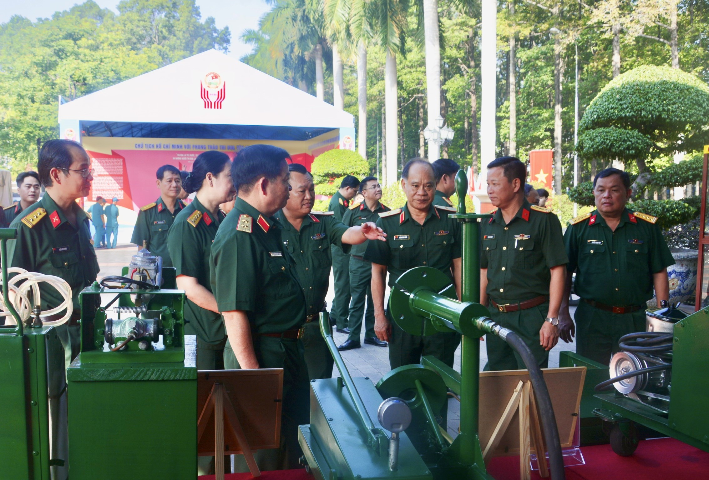 Thủ trưởng Bộ Tư lệnh Quân khu và Đoàn công tác Cục Tuyên huấn kiểm tra khu trang trí, trưng bày tại Đại hội.