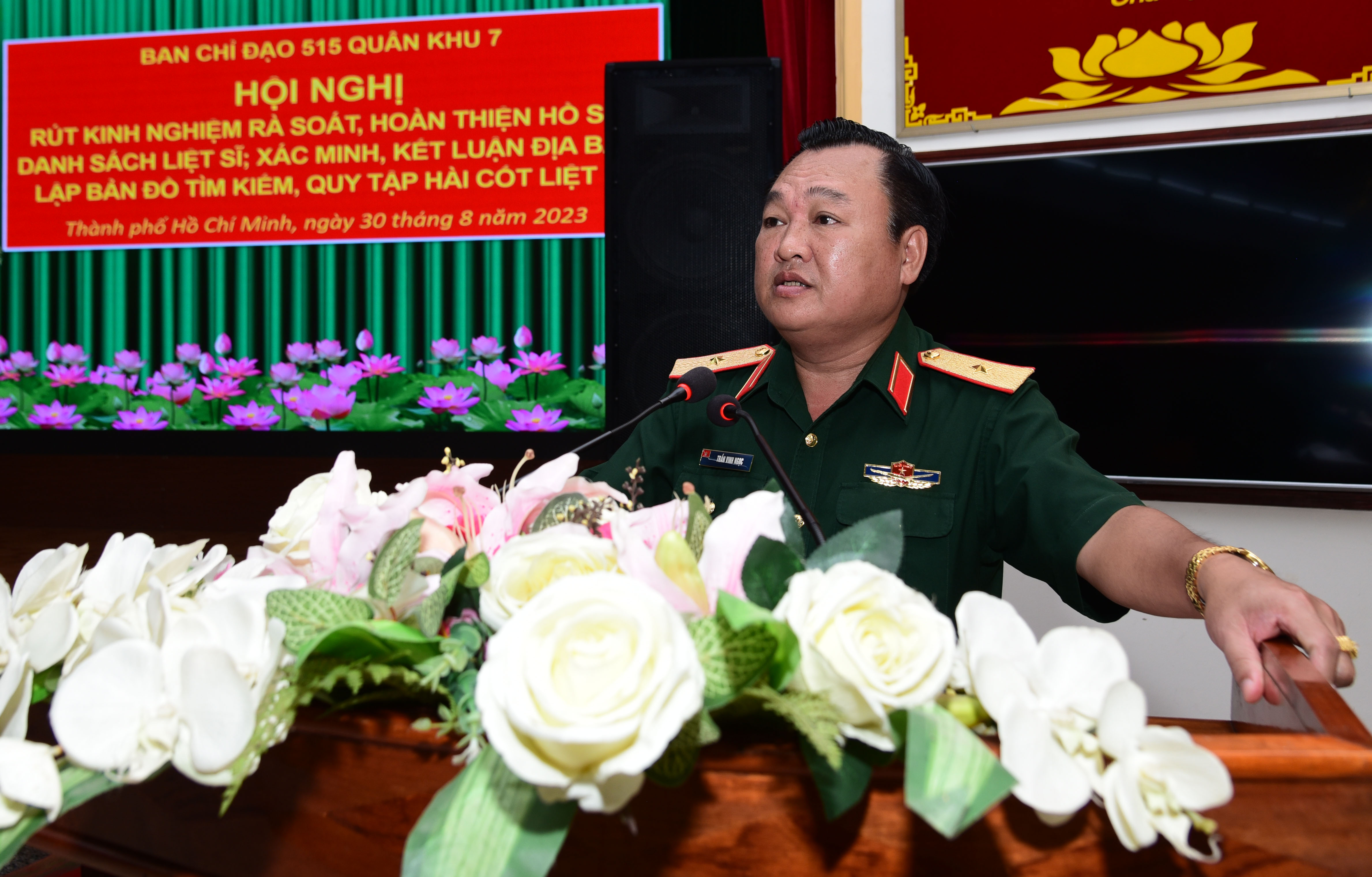 “Đến thời điểm hiện tại đã kết luận địa bàn được hơn 13.234/42.891 liệt sĩ hy sinh trên địa bàn. Hiện nay, Thành phố đang hoàn chỉnh bổ sung dữ liệu kết luận địa bàn và lập bản đồ đợt 1 xong trước ngày 30/9/2023 theo chỉ đạo của Ban chỉ đạo 515 Quân khu 7. Trên cơ sở kết luận địa bàn, lập bản đồ tìm kiếm, qui tập hài cốt liệt sĩ; từ năm 2015 đến nay, Ban chỉ đạo 515 Thành phố đã chỉ đạo các địa phương xác minh các khu vực thông tin mộ liệt sĩ và tổ chức tìm kiếm, qui tập 111 vị trí. Kết quả đã qui tập được 185 hài cốt liệt sĩ”. Ông Dương Anh Đức, Phó Chủ tịch Ủy ban Nhân dân, Trưởng Ban chỉ đạo 515 Thành phố Hồ Chí Minh cho biết.