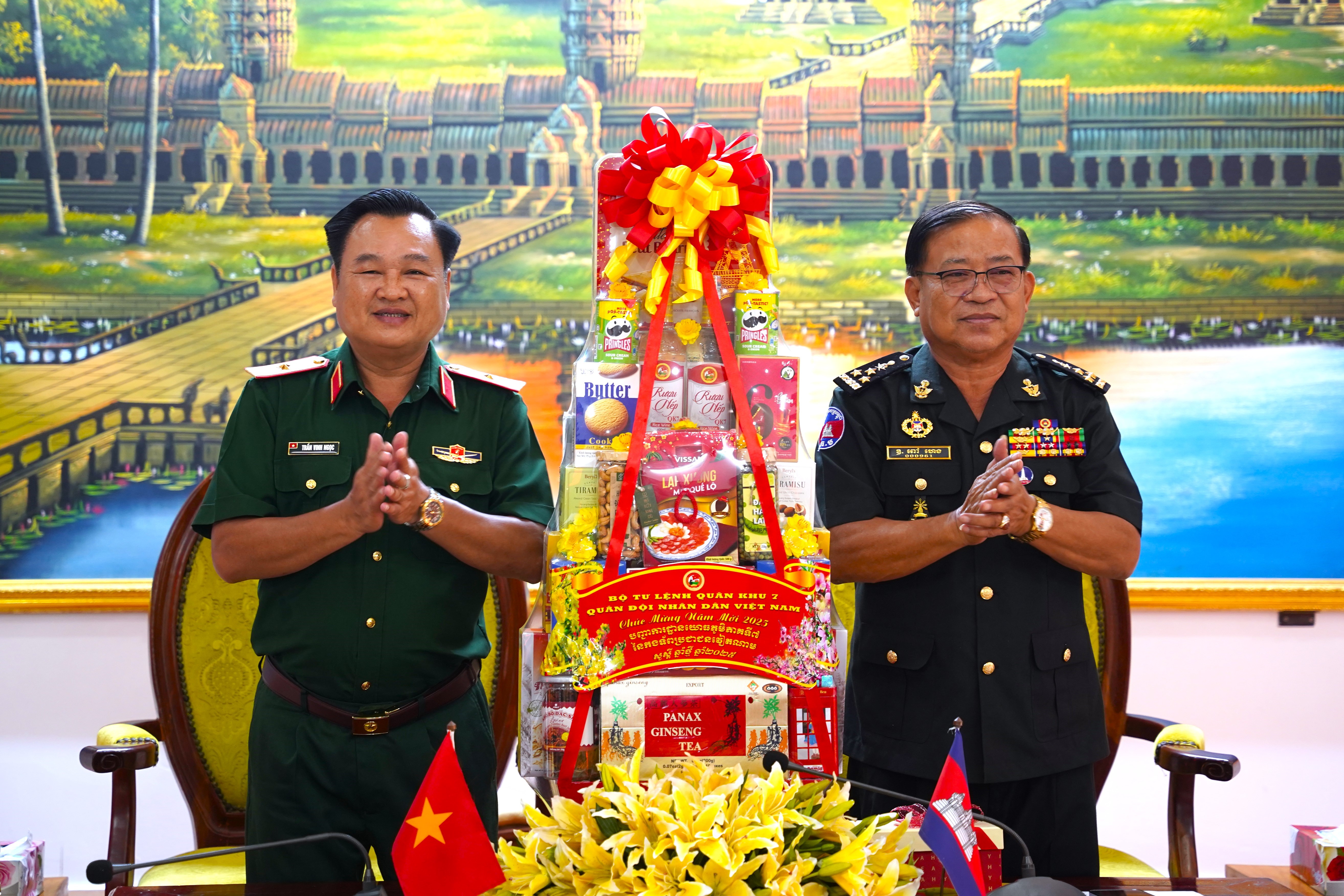 Thiếu tướng Trần Vinh Ngọc, Bí thư Đảng ủy, Chính ủy Quân khu 7 chúc tết Chol Chnam Thmay Bộ Tư lệnh Quân khu 4, Quân đội Hoàng gia Campuchia.