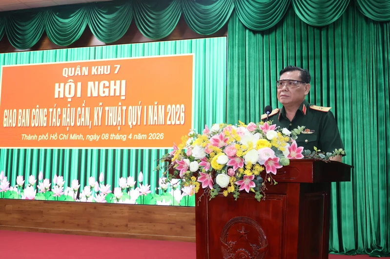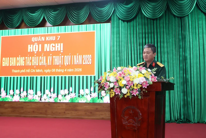 (QK7 Online) – Ngày 8/4, Quân khu 7 tổ chức Hội nghị giao ban công tác hậu cần, kỹ thuật quý I năm 2026. Thiếu tướng Đặng Văn Lẫm, Phó Tư lệnh Quân khu dự, phát biểu chỉ đạo.