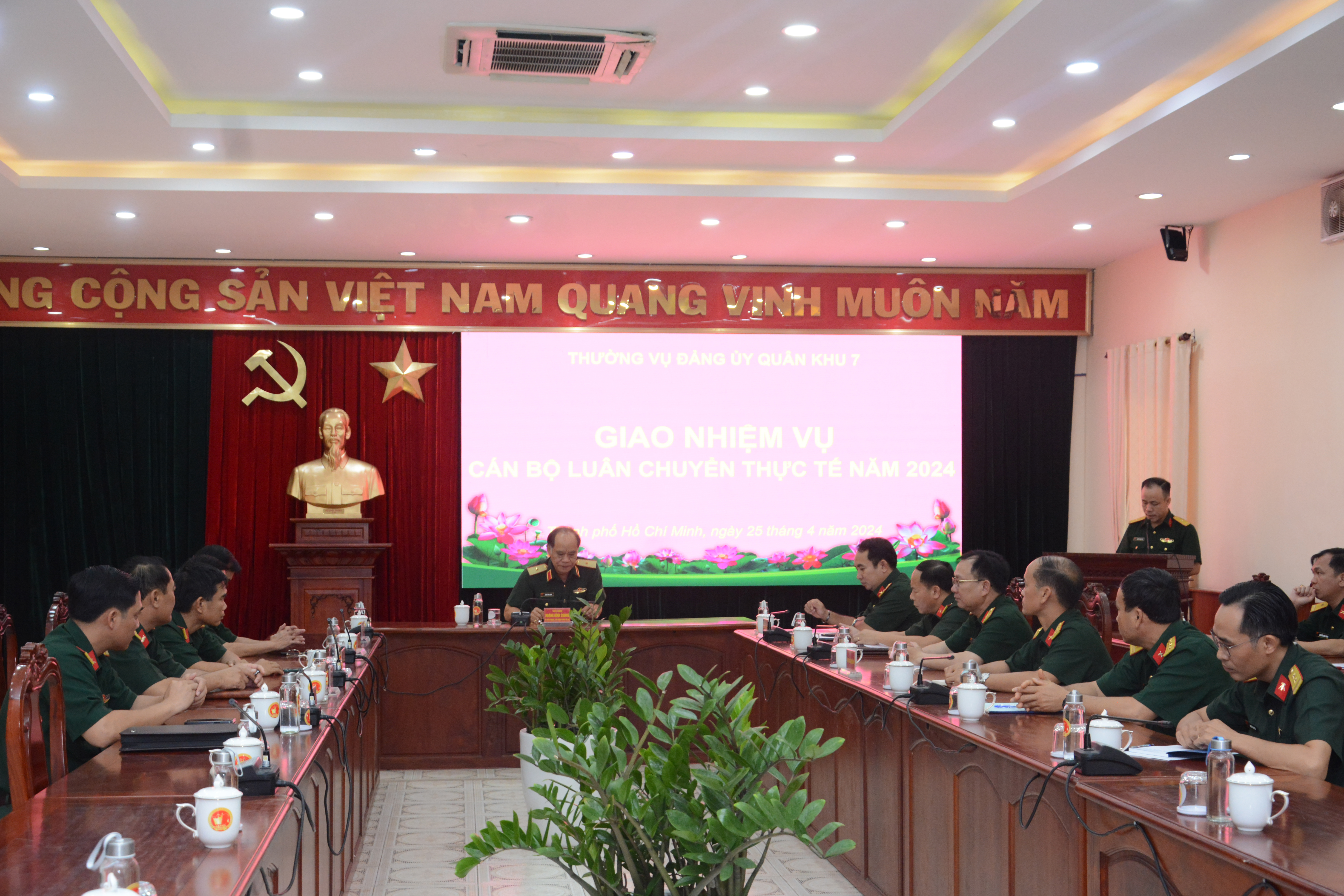 Thực hiện các quyết định của Bộ Quốc phòng, 5 đồng chí thuộc diện luân chuyển thực tế năm 2024 trên địa bàn Quân khu 7 gồm: Đại tá Trần Xuân Vương, Chủ nhiệm Bộ môn Tham mưu, Khoa Quân sự địa phương, Học viện Quốc phòng đi luân chuyển thực tế giữ chức Phó Chỉ huy trưởng Bộ CHQS tỉnh Bình Phước; Đại tá Đinh Viết Hải, Trưởng phòng Thông tin Khoa học quân sự, Học viện Lục quân đi luân chuyển thực tế giữ chức Phó Chỉ huy trưởng Bộ CHQS tỉnh Bình Thuận; Đại tá Nguyễn Xuân Thuận, Phó Chủ nhiệm Khoa Kỹ thuật bộ binh, Trường Sĩ quan Lục quân 2 đi luân chuyển thực tế giữ chức Phó Chỉ huy trưởng Bộ CHQS tỉnh Đồng Nai; Thượng tá Mai Văn Thành, Giảng viên Khoa Trinh sát, Trường Sĩ quan Lục quân 2 đi luân chuyển thực tế giữ chức Phó Lữ đoàn trưởng Lữ đoàn 26; Trung tá Nguyễn Thọ Yên, Trưởng ban Cán bộ, Phòng Chính trị, Trường Sĩ quan Kỹ thuật Quân sự, Tổng cục Kỹ thuật đi luân chuyển thực tế giữ chức Phó Chính ủy Lữ đoàn 77.