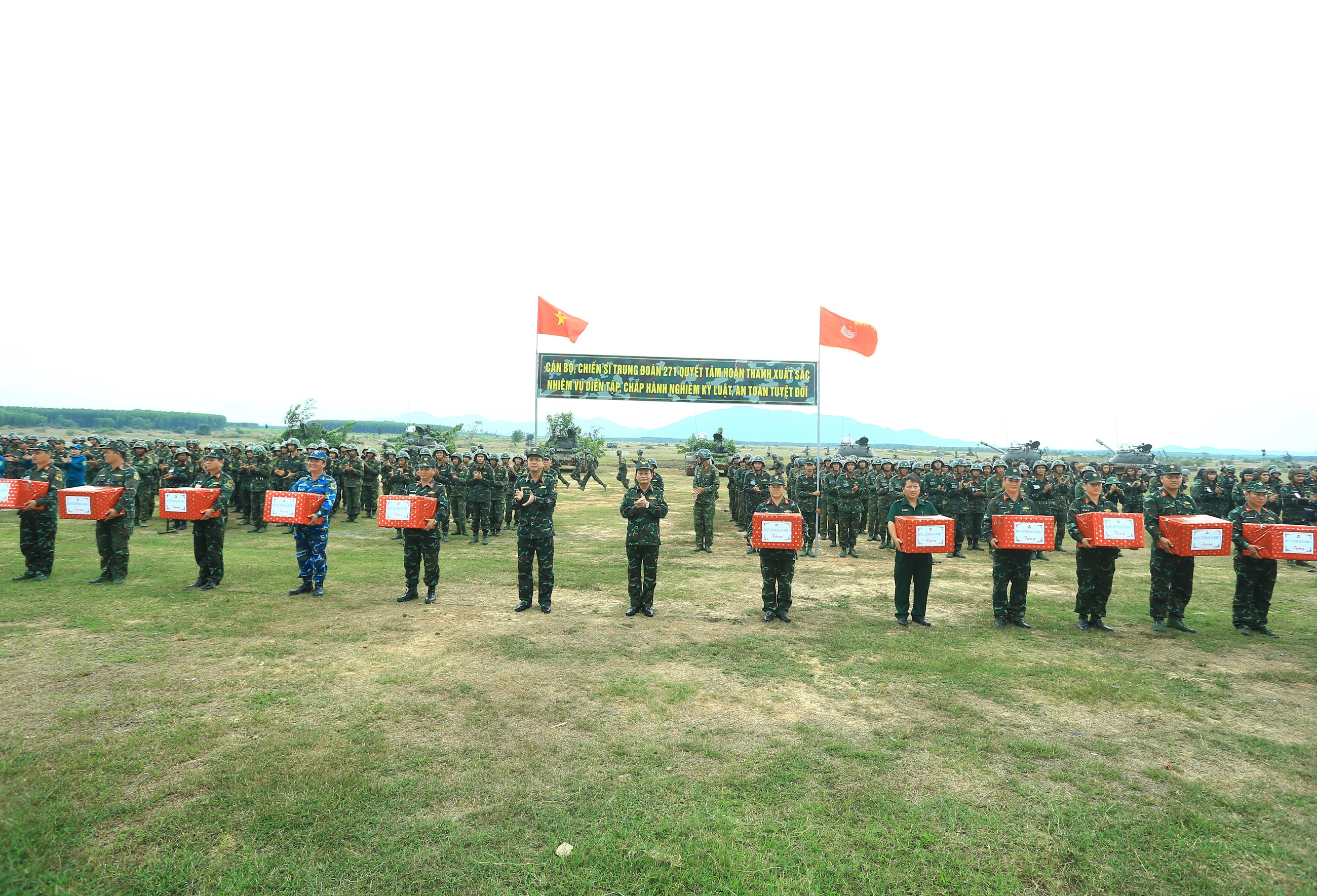 Thủ trưởng Bộ Tư lệnh Quân khu tặng quà chúc mừng các đơn vị hoàn thành cuộc diễn tập.