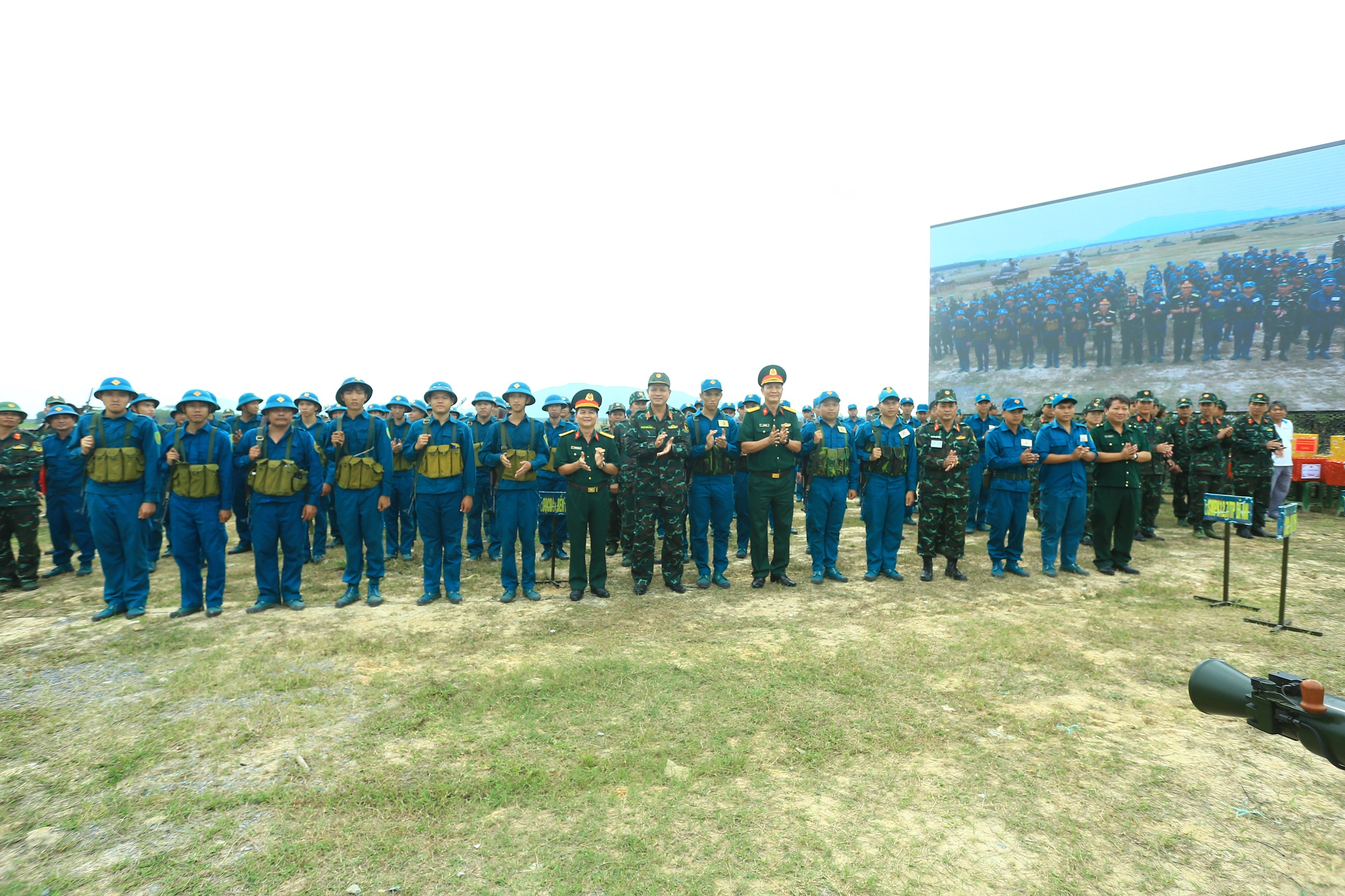 Trung tướng Nguyễn Trường Thắng, Tư lệnh Quân khu chụp hình lưu niệm với cán bộ, chiến sĩ LLVT tỉnh Bình Dương tham gia diễn tập.