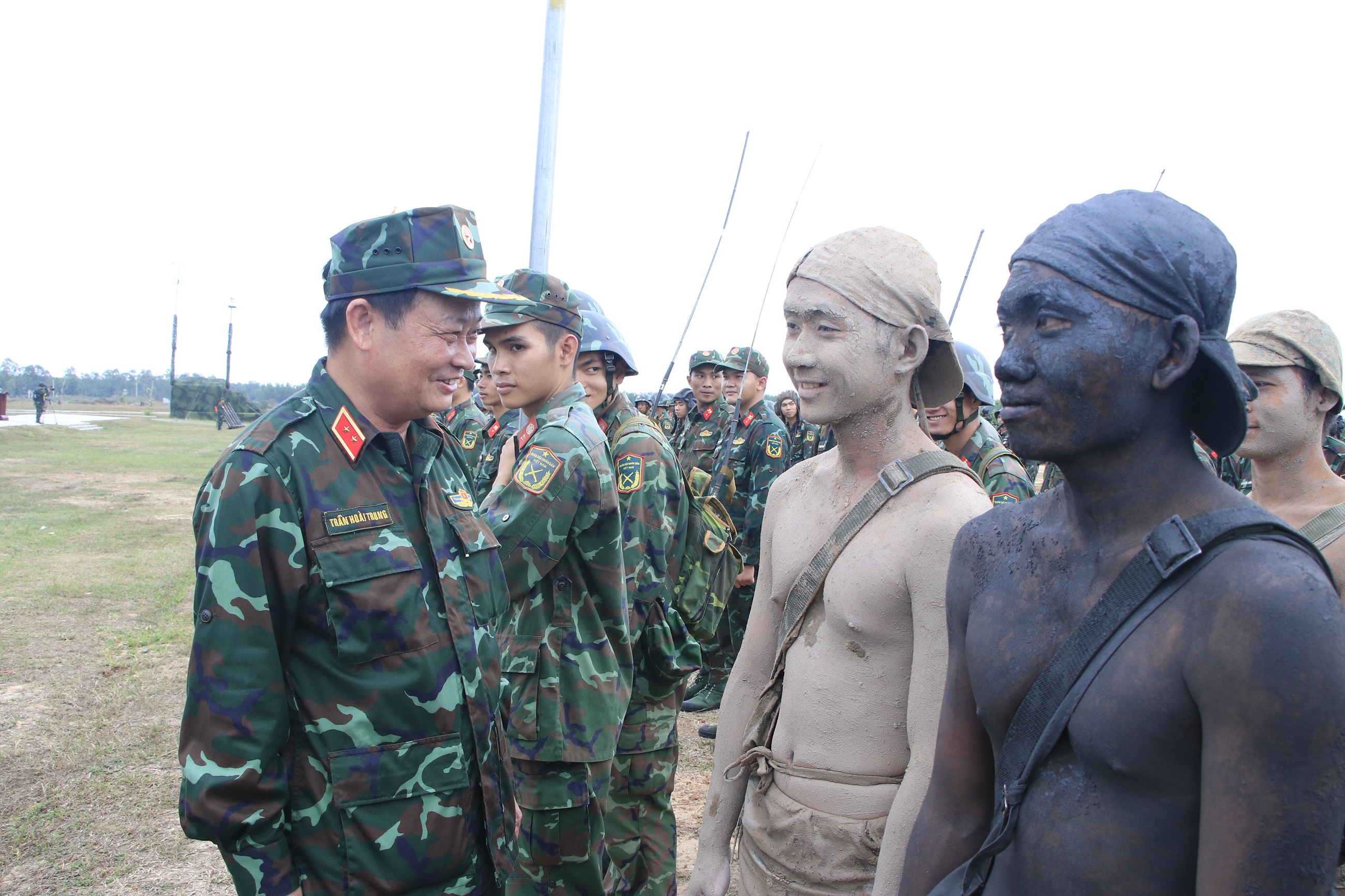 Trung tướng Trần Hoài Trung, Chính ủy Quân khu động viên, chúc mừng các chiến sĩ đặc công hoàn thành tốt nhiệm vụ trong diễn tập.