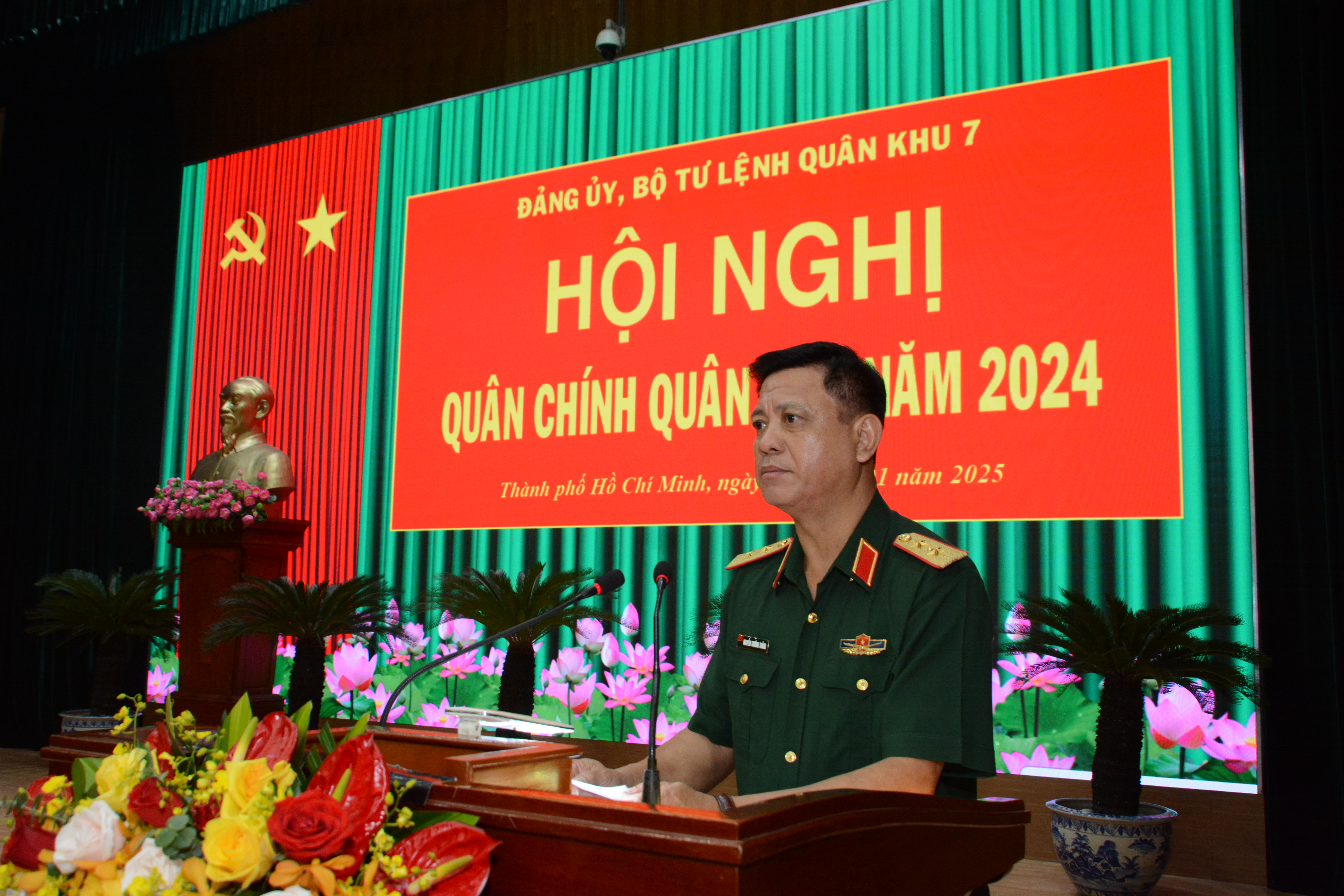 Phát biểu kết luận hội nghị, Trung tướng Nguyễn Trường Thắng, Tư lệnh Quân khu nhấn mạnh: Năm 2025, xác định chủ đề là “Năm tăng tốc, bứt phá, quyết tâm hoàn thành thắng lợi các mục tiêu, nhiệm vụ Nghị quyết Đại hội Đảng bộ Quân khu nhiệm kỳ 2020-2025, Đại hội Đảng bộ Quân đội lần thứ XI”; LLVT Quân khu quyết tâm khắc phục mọi khó khăn, nêu cao tinh thần đoàn kết, mẫu mực, kỷ cương, chủ động, sáng tạo, quyết tâm hoàn thành thắng lợi nhiệm vụ quân sự, quốc phòng năm 2025.