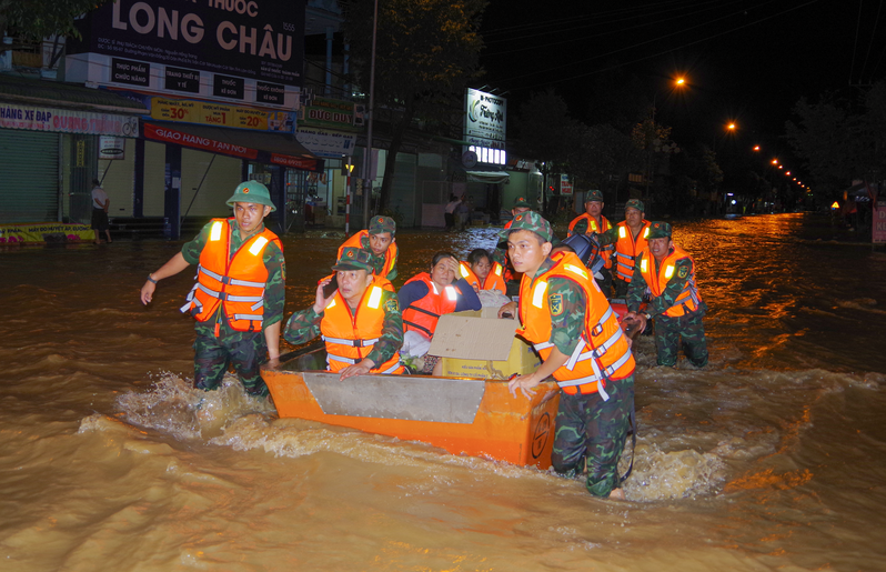 Cùng với nhân lực, hệ thống phương tiện chuyên dụng như xe kamaz, xe cứu hộ, xe cẩu, ca nô, xuồng cứu hộ, xe cứu thương được tăng cường tối đa góp phần đẩy nhanh tốc độ cứu dân, vận chuyển hàng hóa và khắc phục bước đầu hệ thống giao thông bị chia cắt. Các đơn vị đồng thời tổ chức nhiều bếp ăn dã chiến, phối hợp địa phương bảo đảm hàng nghìn suất ăn mỗi ngày cho bộ đội và Nhân dân vùng lũ.