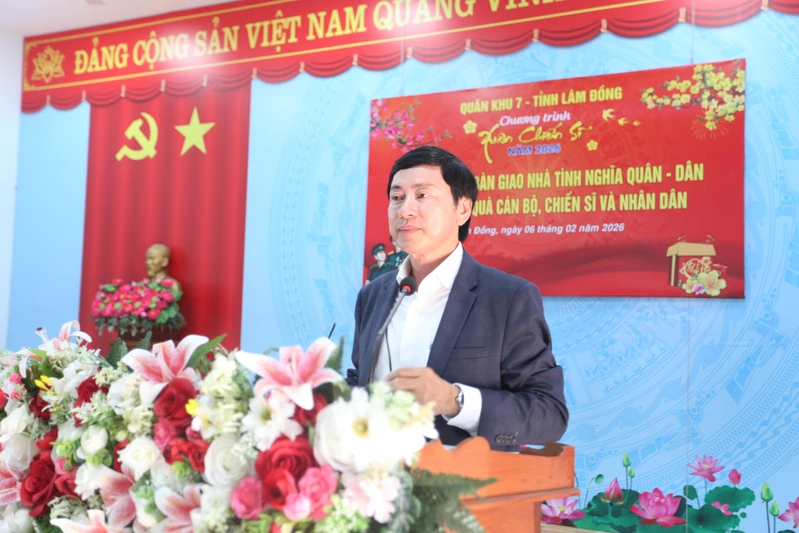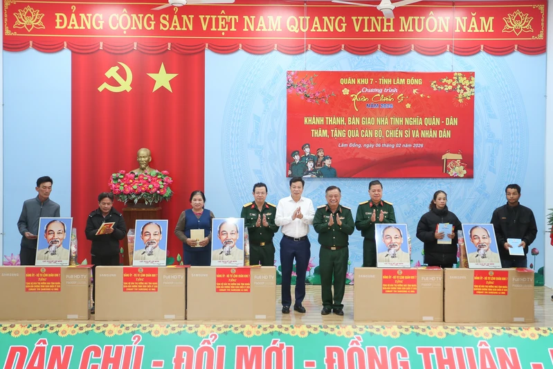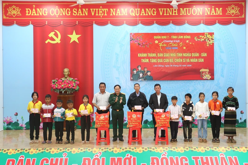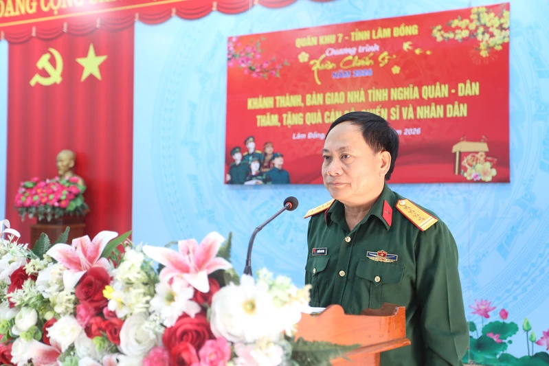 (QK7 Online) – Sáng 6/2, trong khuôn khổ Chương trình “Xuân Chiến sĩ” lần thứ XI, năm 2026 tại tỉnh Lâm Đồng, Bộ Tư lệnh Quân khu 7 phối hợp với tỉnh Lâm Đồng tổ chức lễ khánh thành và bàn giao 10 căn nhà “Tình nghĩa quân - dân”; tặng quà, chúc Tết cấp ủy, chính quyền, các đơn vị, Nhân dân, gia đình chính sách và các cơ sở tôn giáo trên địa bàn xã Thuận An.