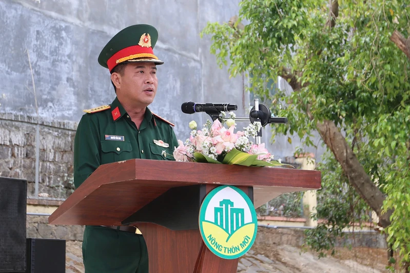 Đại tá Nguyễn Tấn Linh, Phó Tư lệnh Quân khu 7 phát biểu tại buổi lễ khánh thành, bàn giao công trình văn hóa, thể dục , thể thao; tôn tạo Nhà sinh hoạt cộng đồng Buôn Buôr, Tâm Thắng, xã Cư Jút.