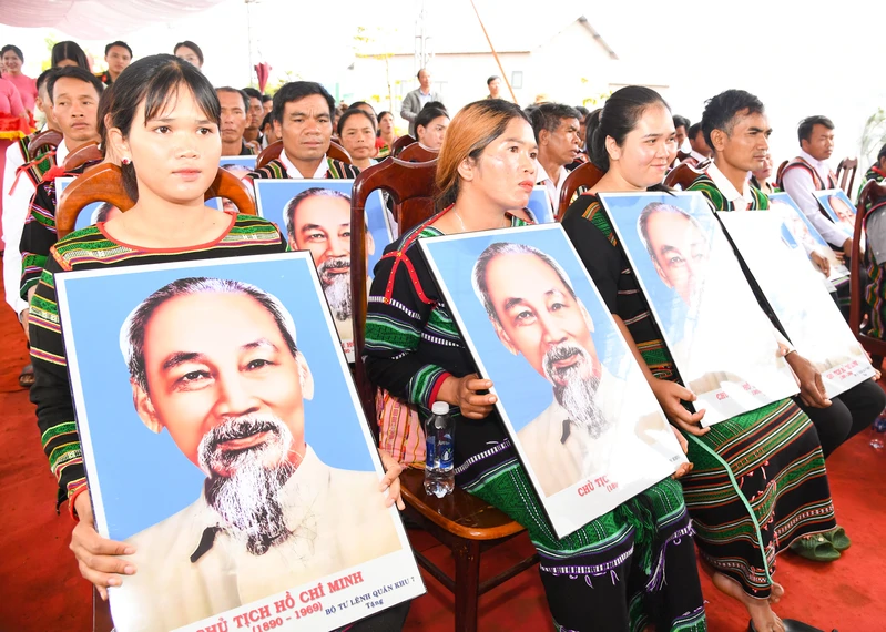 Bà con đồng bào phấn khởi, vui mừng tại lễ khánh thành, bàn giao công trình.