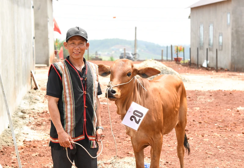 Bà con đồng bào bon Bu Dar vui mừng khi được trao bò giống.