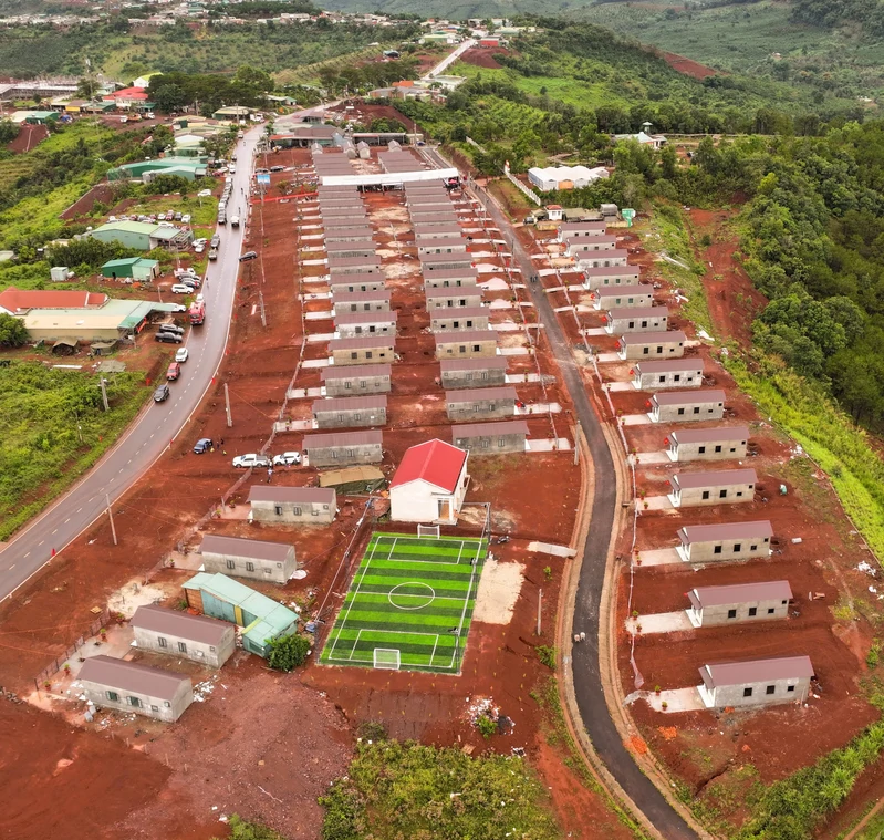 Toàn cảnh “Điểm dân cư liền kề chốt dân quân biên giới” tại bon Bu Dăr, xã Quảng Trực tỉnh Lâm Đồng.