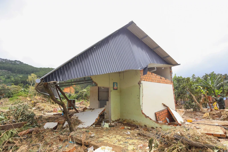 Một căn nhà bị hư hại hoàn toàn tại xã D'Ran.