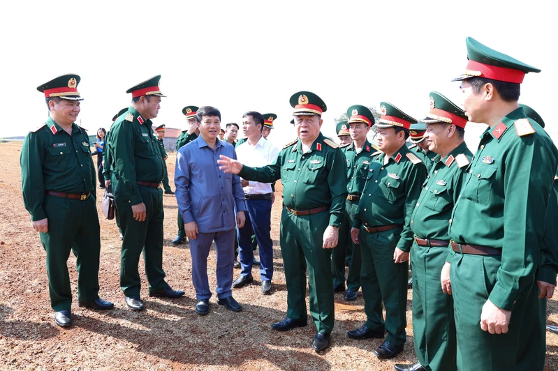 Đại tướng Nguyễn Trọng Nghĩa, Ủy viên Bộ Chính trị, Bí thư Trung ương Đảng, Ủy viên Thường vụ Quân ủy Trung ương, Chủ nhiệm Tổng Cục Chính trị Quân đội Nhân dân Việt Nam và các biểu tham quan vị trí xây dựng điểm dân cư.