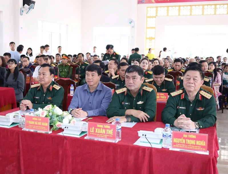 Từ phải qua trái: Đại tướng Nguyễn Trọng Nghĩa, Ủy viên Bộ Chính trị, Bí thư Trung ương Đảng, Ủy viên Thường vụ Quân ủy Trung ương, Chủ nhiệm Tổng Cục Chính trị Quân đội Nhân dân Việt Nam; Trung tướng Lê Xuân Thế, Ủy viên Ban chấp hành Trung ương Đảng, Phó Bí thư Đảng ủy, Tư lệnh Quân khu 7; đồng chí Y Thanh Hà Niê Kđăm, Ủy viên Ban Chấp hành Trung ương Đảng, Bí thư Tỉnh ủy Lâm Đồng và Trung tướng Trần Vinh Ngọc, Bí thư Đảng ủy, Chính ủy Quân khu 7 dự chương trình.