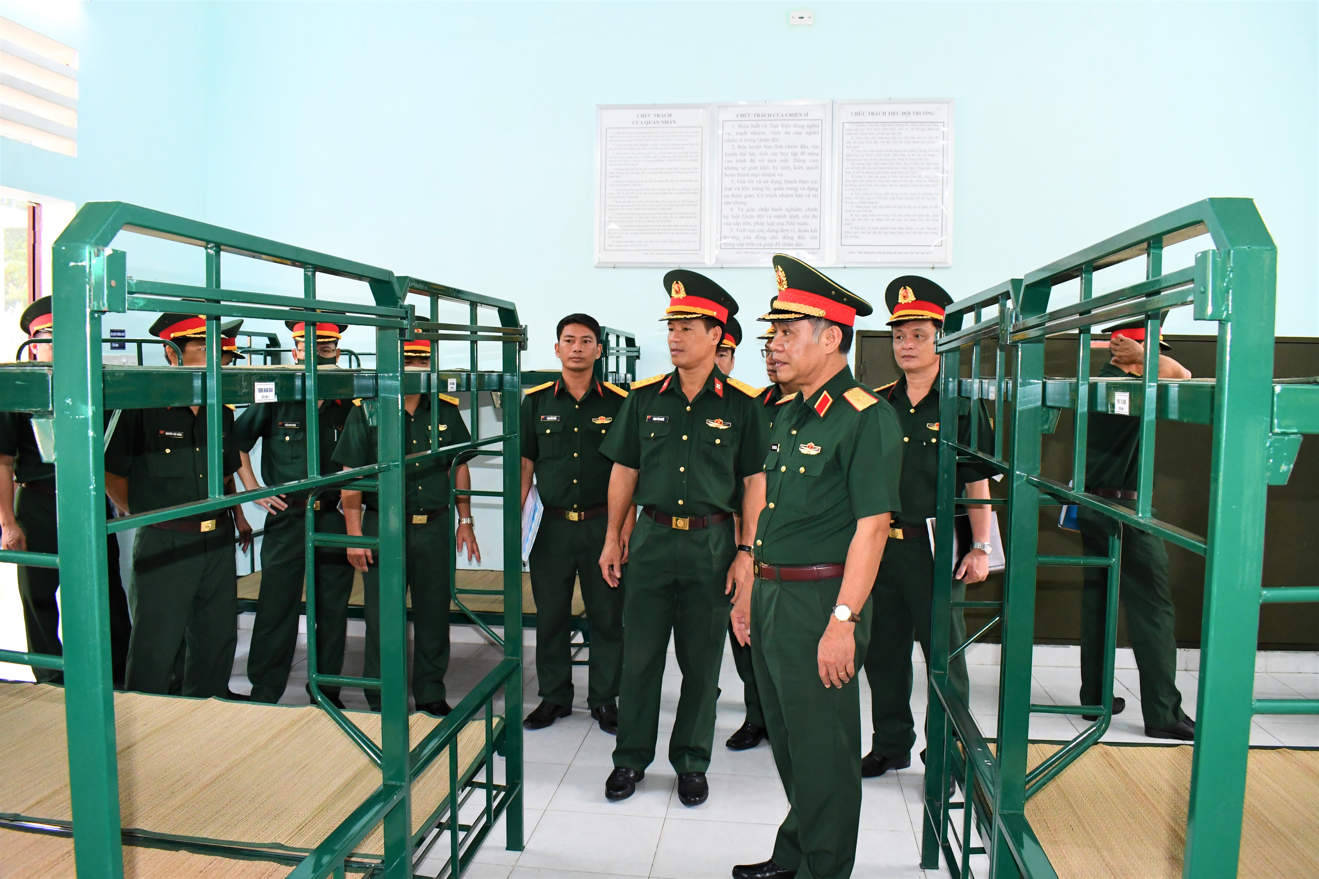 Thiếu tướng Hoàng Đình Chung và đoàn công tác kiểm tra nơi ở của chiến sĩ mới tại Lữ đoàn 25.