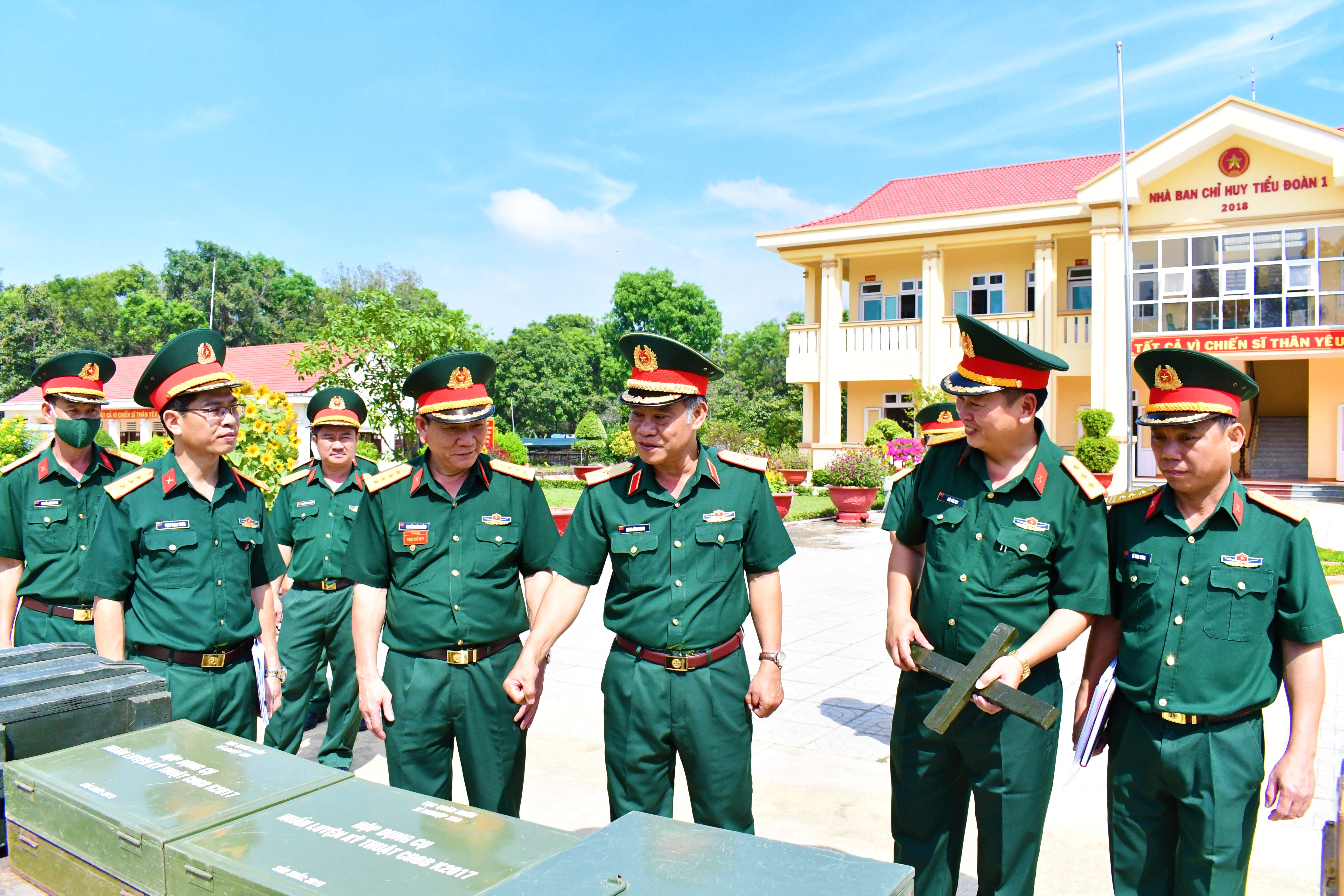 Thiếu tướng Hoàng Đình Chung và đoàn công tác kiểm tra các mô hình học cụ tại Lữ đoàn 75.
