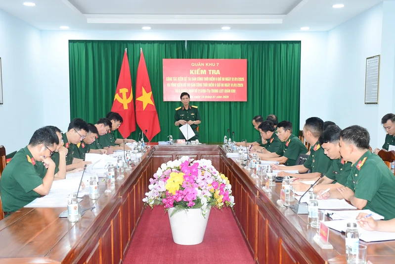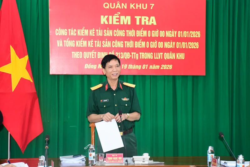 (QK7 Online) - Ngày 19/1, đoàn công tác Quân khu 7 do Đại tá Trịnh Ngọc Dục, Phó Chủ nhiệm Hậu cần - Kỹ thuật Quân khu làm trưởng đoàn kiểm tra công tác kiểm kê tài sản công thời điểm 0 giờ 00 ngày 01/01/2026 và tổng kiểm kê tài sản công thời điểm 0 giờ 00 ngày 01/01/2026 theo Quyết định số 213/QĐ-TTg ngày 01/3/2024 của Thủ tướng Chính phủ tại Lữ đoàn 75.