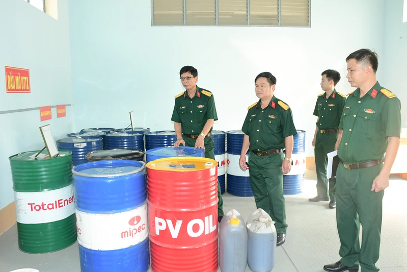 Đại tá Trịnh Ngọc Dục, Phó Chủ nhiệm Hậu cần - Kỹ thuật Quân khu kiểm tra kho dầu mỡ Lữ đoàn 75.