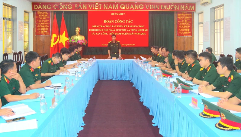(QK7 Online) - Ngày 13/1, đoàn công tác Quân khu 7 do Đại tá Trịnh Ngọc Dục, Phó Chủ nhiệm Hậu cần - Kỹ thuật Quân khu làm trưởng đoàn tổ chức kiểm tra công tác kiểm kê trang bị kỹ thuật, tài sản công, hàng dự trữ Quốc phòng, hàng dự trữ Quốc gia trong Quốc phòng thời điểm 0 giờ ngày 01/ 01/2026 tại Trung đoàn Gia Định, Bộ Tư lệnh Thành phố Hồ Chí Minh. Tham gia đoàn kiểm tra có đại diện các cơ quan chức năng Quân khu 7.