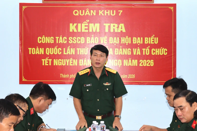 (QK7 Online) - Sáng 11/1, đoàn công tác Quân khu 7 do Đại tá Phùng Thế Hùng, Phó Tham mưu trưởng Quân khu làm trưởng đoàn đến kiểm tra công tác sẵn sàng chiến đấu (SSCĐ) bảo vệ Đại hội đại biểu toàn quốc lần thứ XIV của Đảng và công tác tổ chức đón Tết Nguyên đán Bính Ngọ 2026 tại Lữ đoàn 77 và Lữ đoàn 23.
