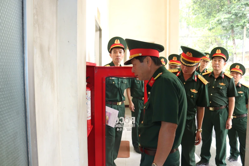 Đại tá Phùng Thế Hùng kiểm tra hệ thống phòng cháy chữa cháy.