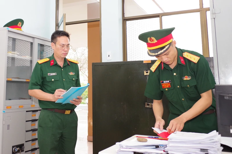 Thủ trưởng các cơ quan Quân khu kiểm tra hệ thống các văn kiện chuyển trạng thái SSCĐ tại Bộ CHQS tỉnh Đồng Nai.