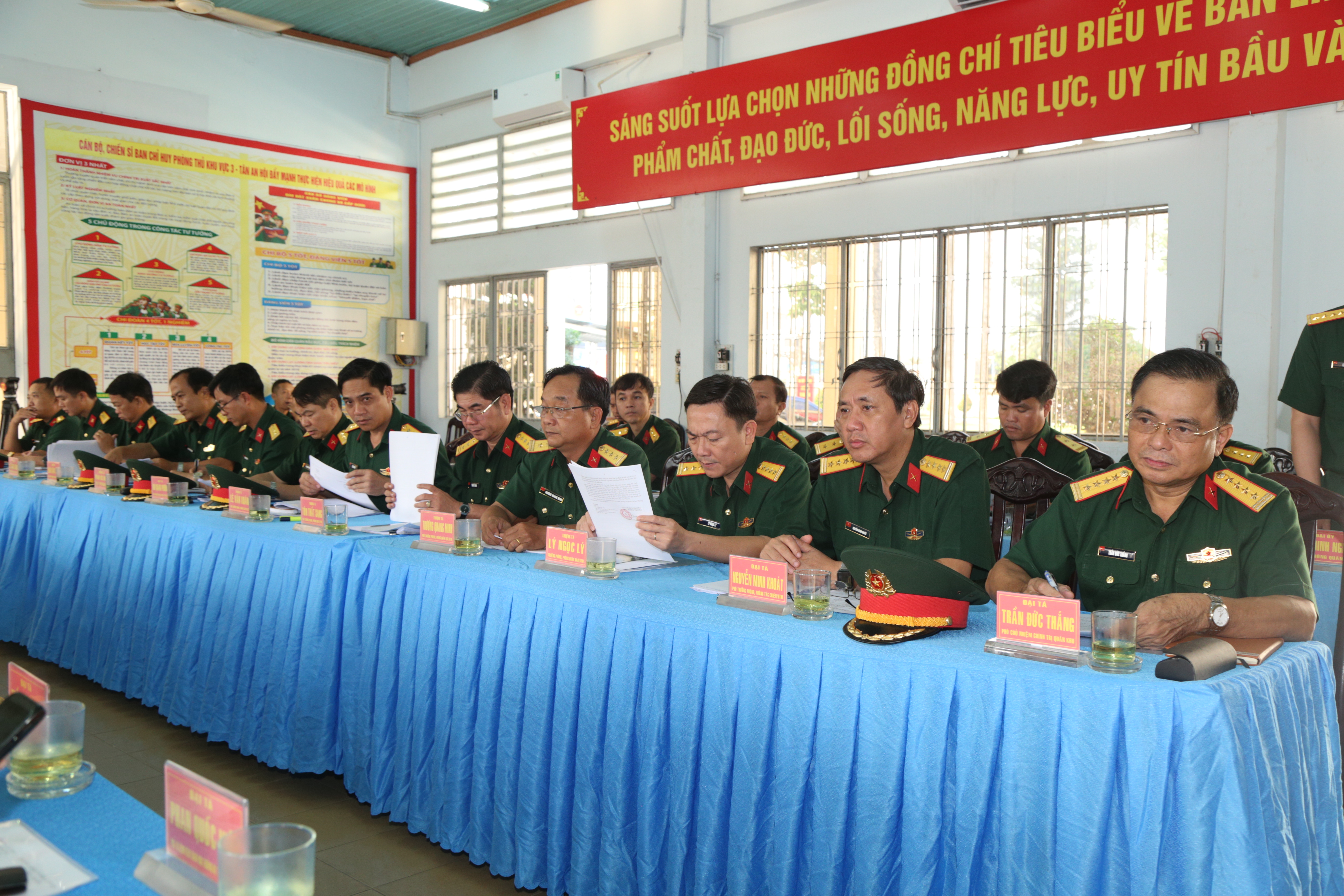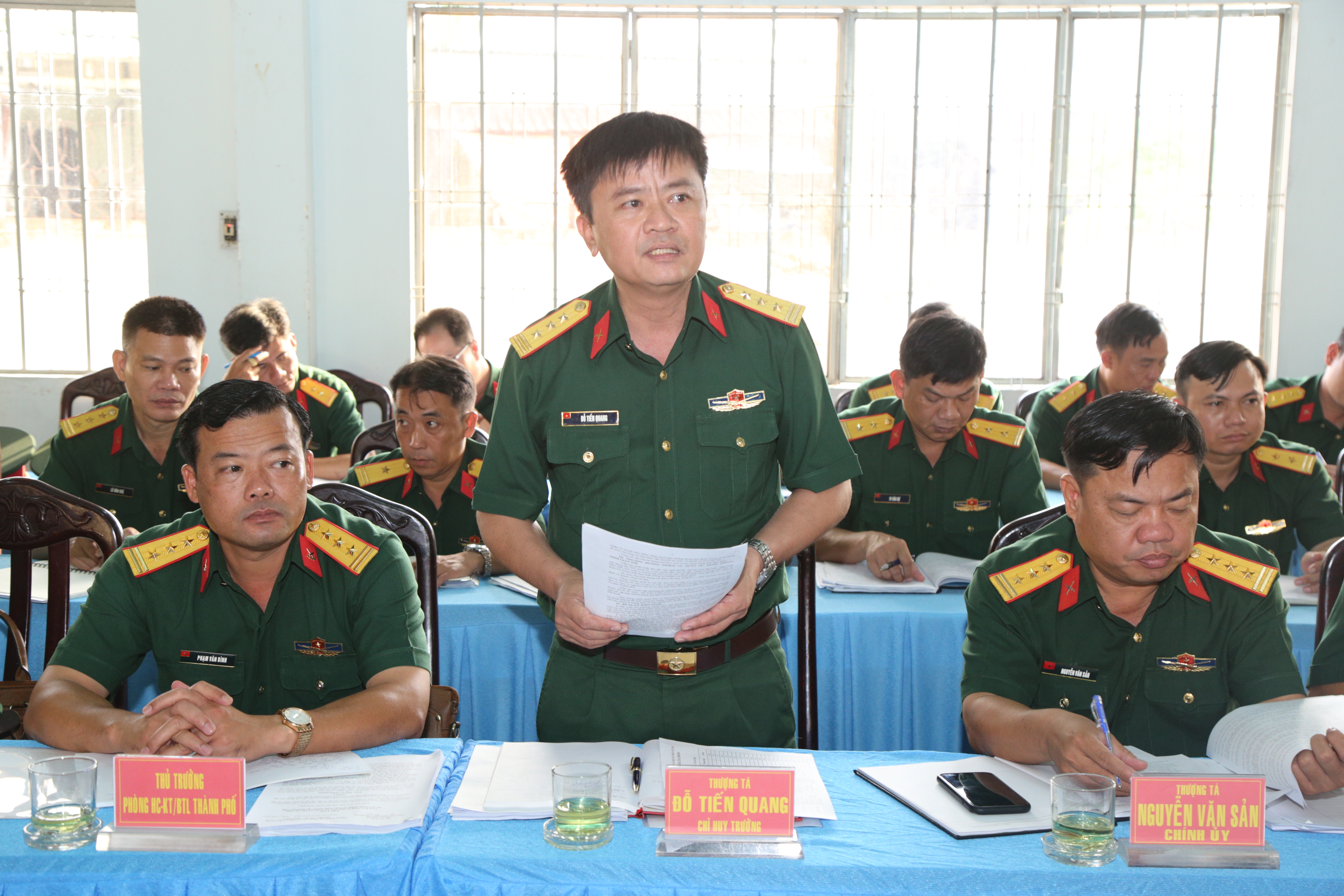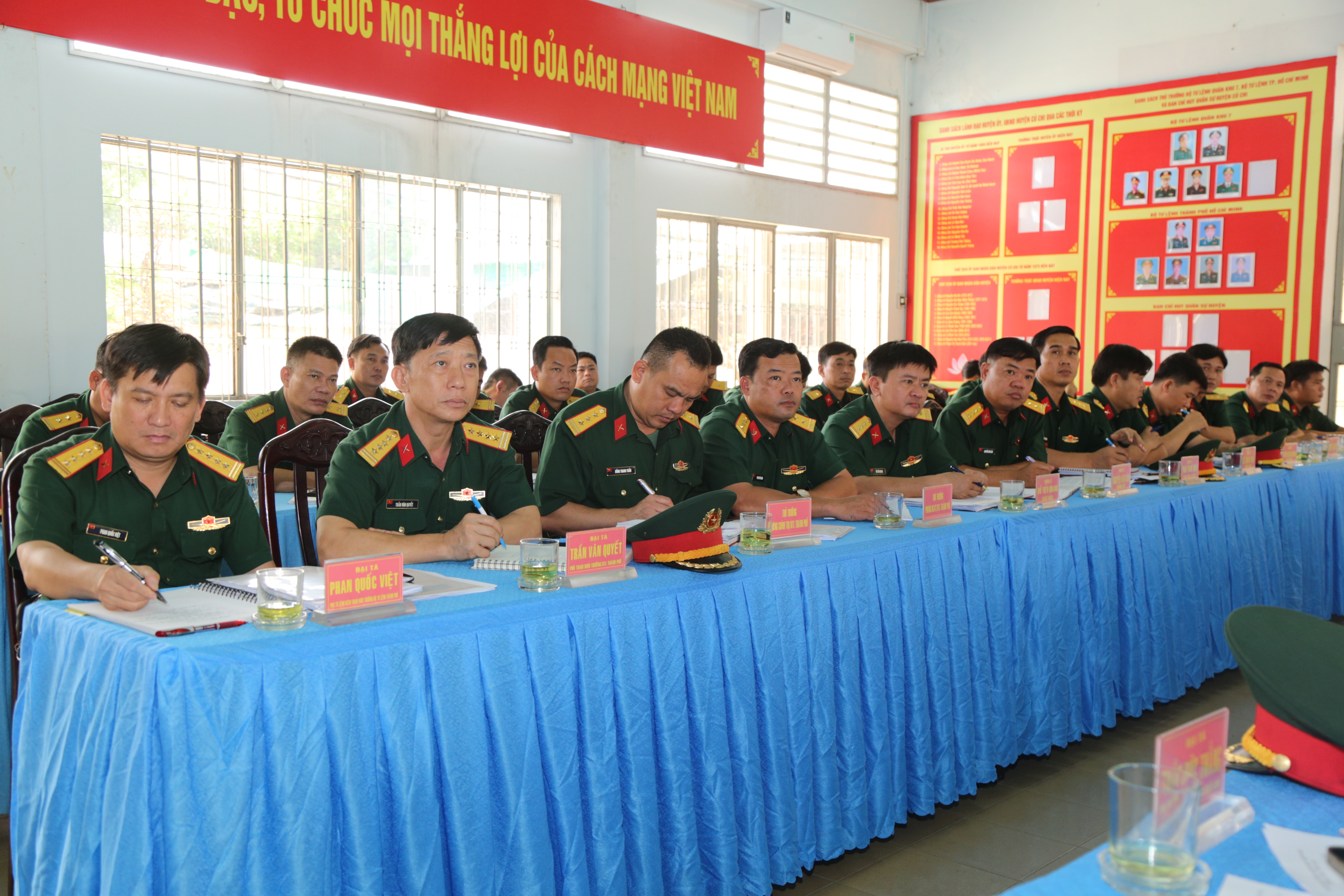 Các đơn vị cũng quán triệt nghiêm túc các chỉ thị, nghị quyết của cấp trên, trọng tâm là Nghị quyết lãnh đạo nhiệm vụ quân sự, quốc phòng và xây dựng Đảng bộ của LLVT Thành phố; kịp thời kiện toàn tổ chức Đảng gắn với điều chỉnh tổ chức biên chế trong giai đoạn thành lập cụm phòng thủ; tổ chức có hiệu quả các phong trào thi đua cao điểm gắn với thực hiện nhiệm vụ chính trị trung tâm của đơn vị; phối hợp chặt chẽ với cấp ủy, chính quyền địa phương trong công tác dân vận, vận động quần chúng, xây dựng thế trận lòng dân gắn với xây dựng cụm phòng thủ. Bảo đảm đầy đủ các mặt hậu cần - kỹ thuật cho thực hiện nhiệm vụ…