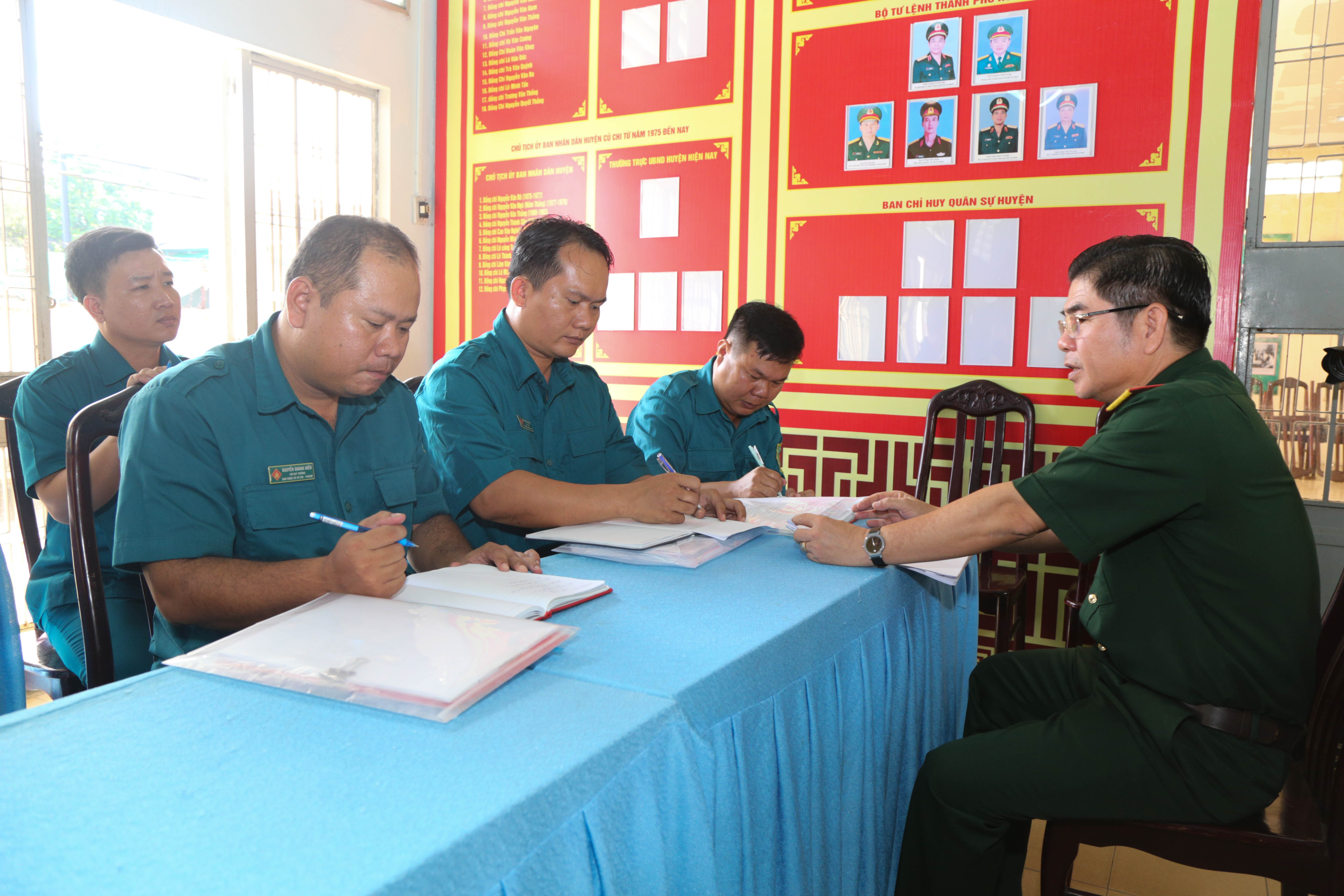 Đồng chí Phó Tư lệnh Quân khu kiểm tra Ban CHQS xã Bình Mỹ.