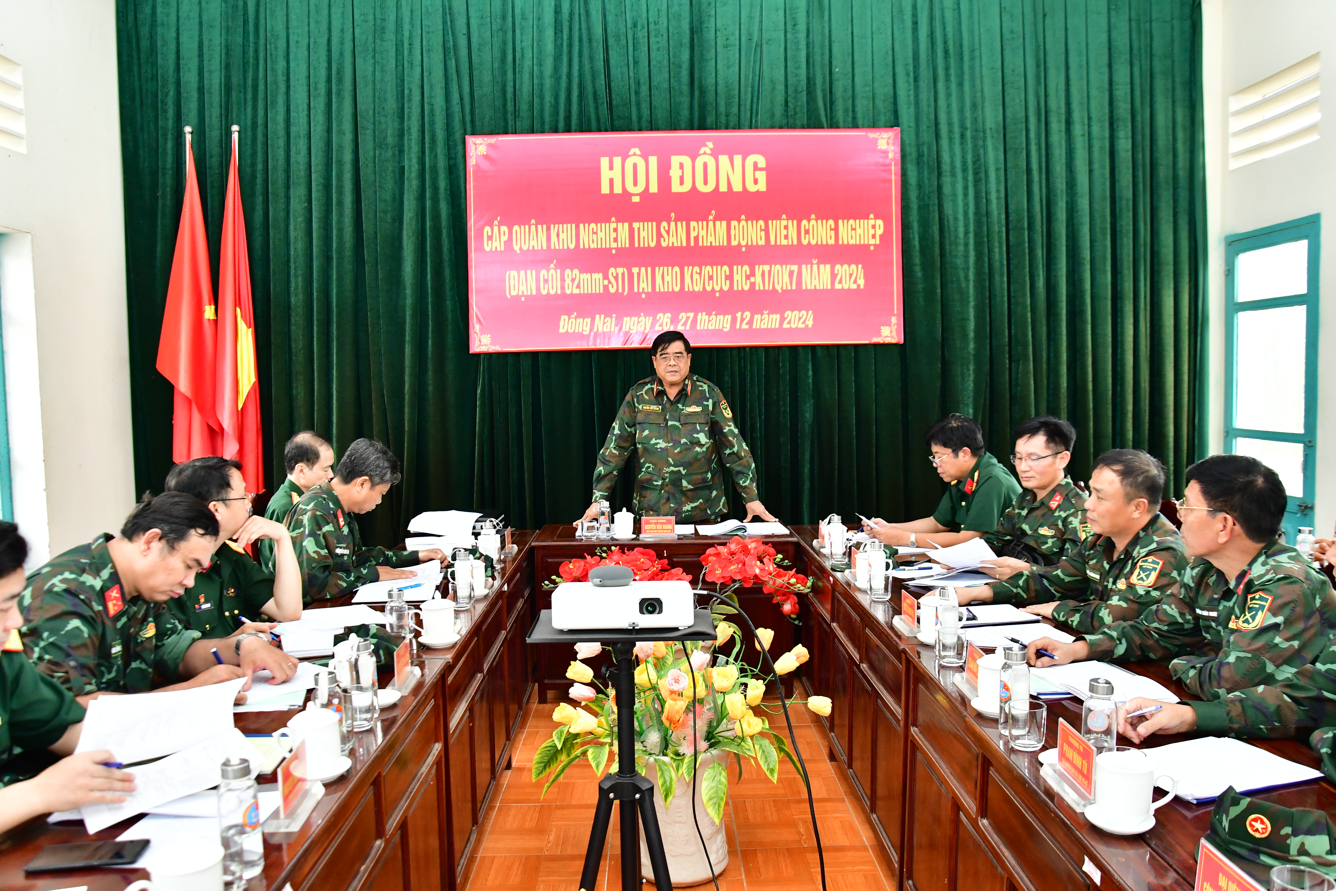 Thiếu tướng Nguyễn Văn Hoàng, Phó Tham mưu trưởng Quân khu 7, Phó Chủ tịch Hội đồng nghiệm thu cấp Quân khu chủ trì nghiệm thu sản phẩm Đạn cối 82mm-ST.