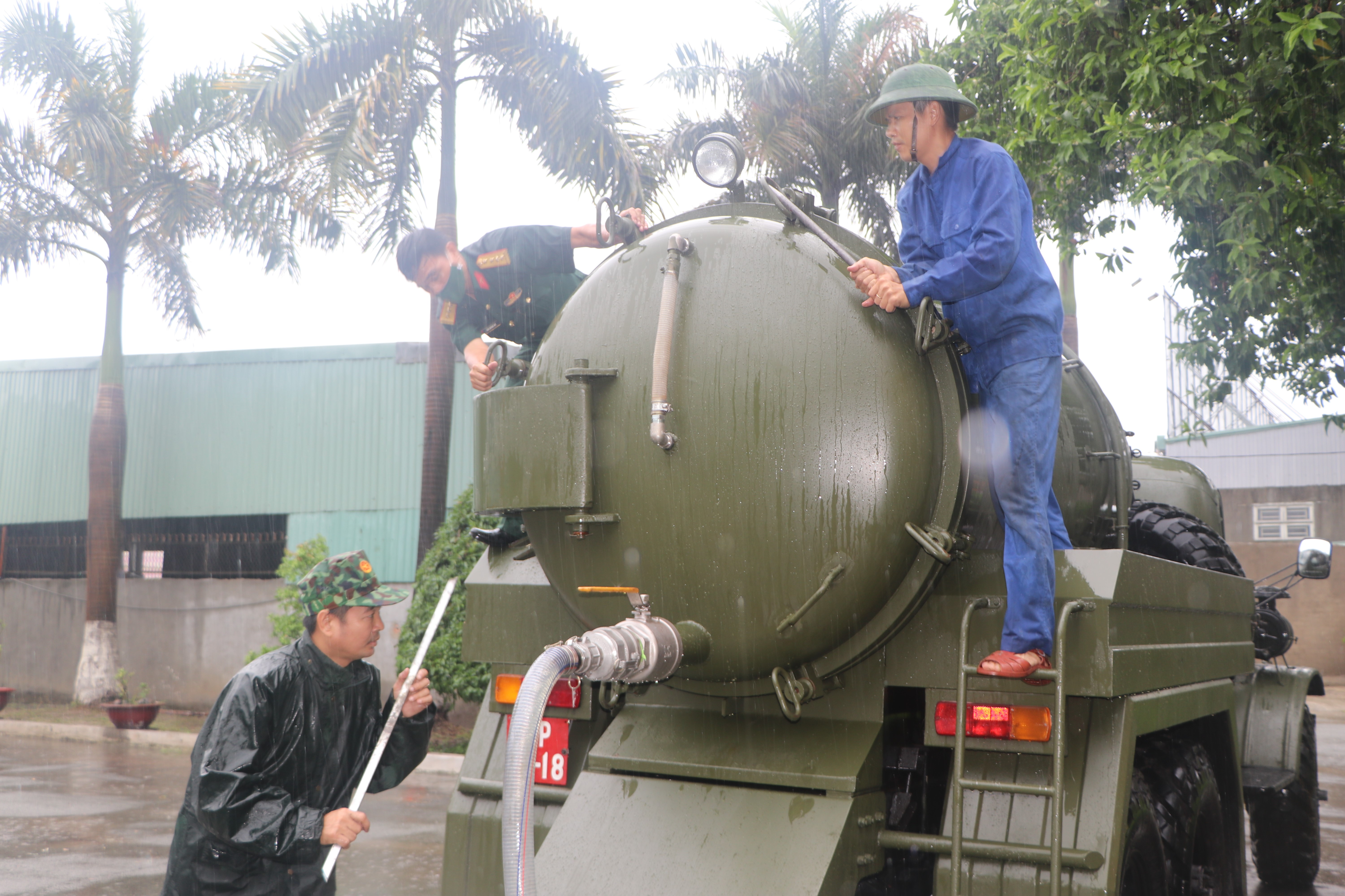 Kíp xe làm công tác chuẩn bị xe hút chất thải.