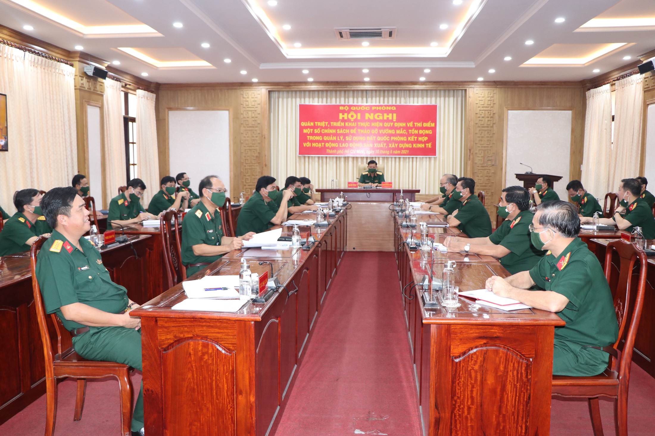 Hội nghị đã được nghe quán triệt, triển khai các văn bản, nghị định, thông tư của Chính phủ, Bộ Quốc phòng về thực hiện các quy định thí điểm một số chính sách nhằm tháo gỡ vướng mắc, tồn đọng trong quản lý, sử dụng đất quốc phòng, kết hợp với lao động sản xuất, xây dựng kinh tế trong các cơ quan, đơn vị.