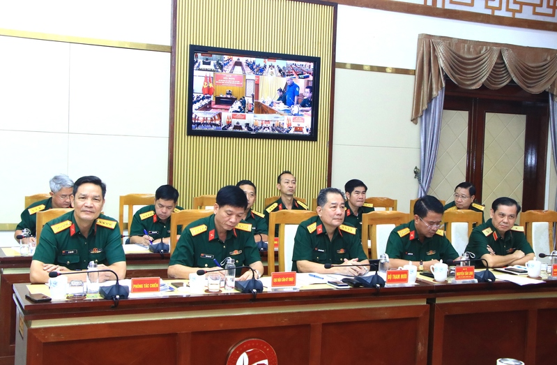 Các đại biểu dự hội nghị tại điểm cầu Sở chỉ huy Quân khu.