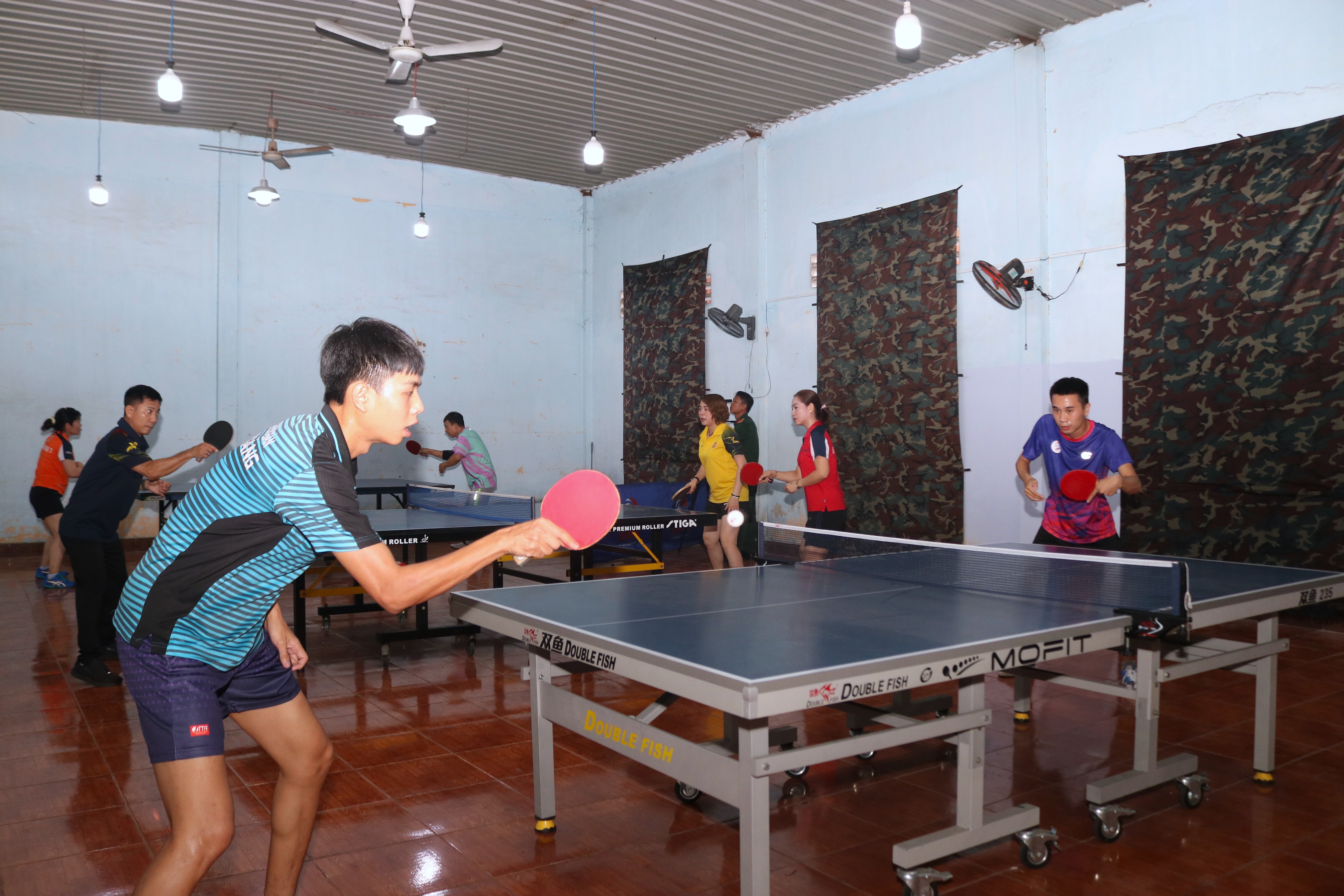 Các VĐV môn Bóng bàn hăng say tập luyện.