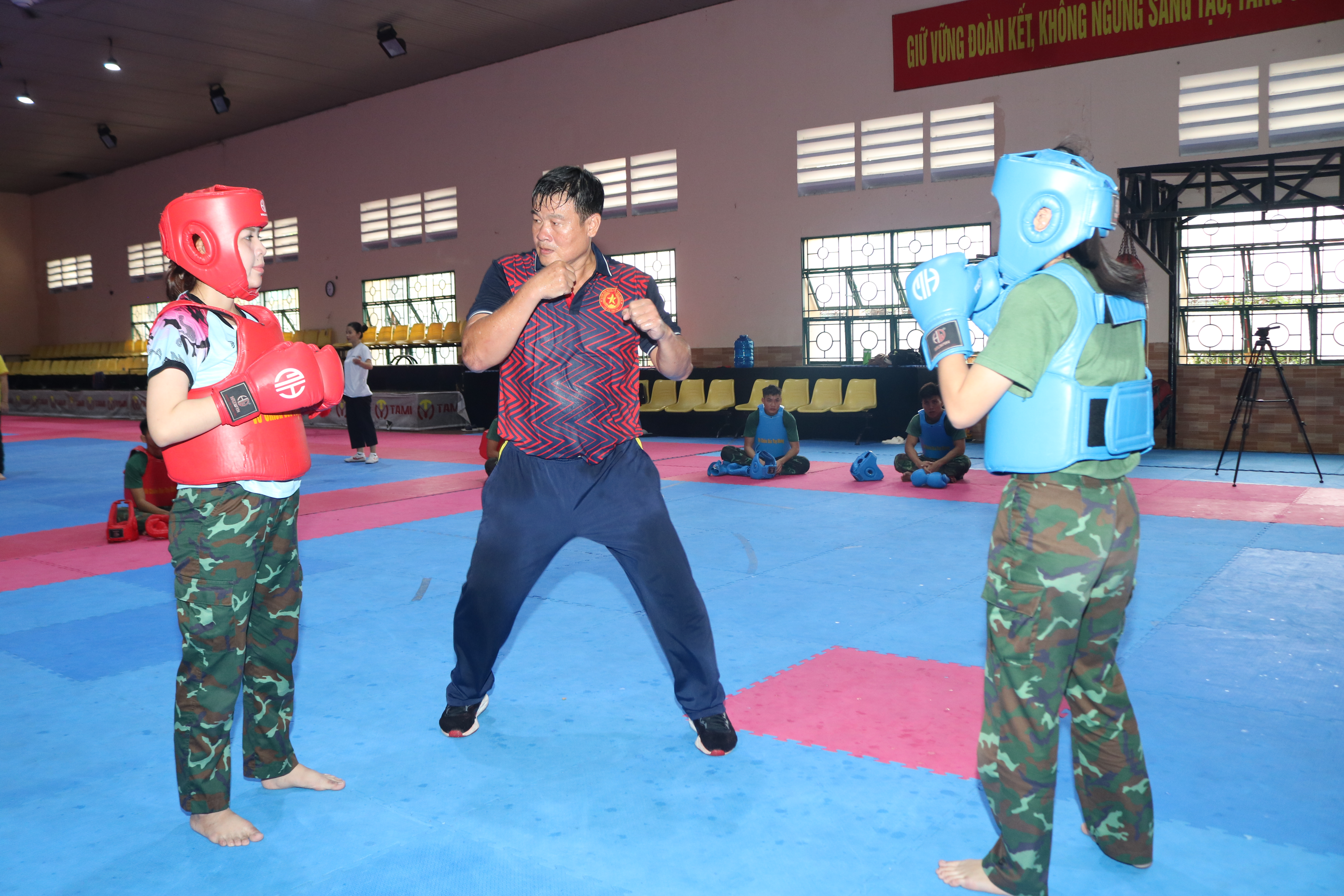 Huấn luyện viên môn Võ chiến đấu tay không hướng dẫn các kỹ thuật cho VĐV.
