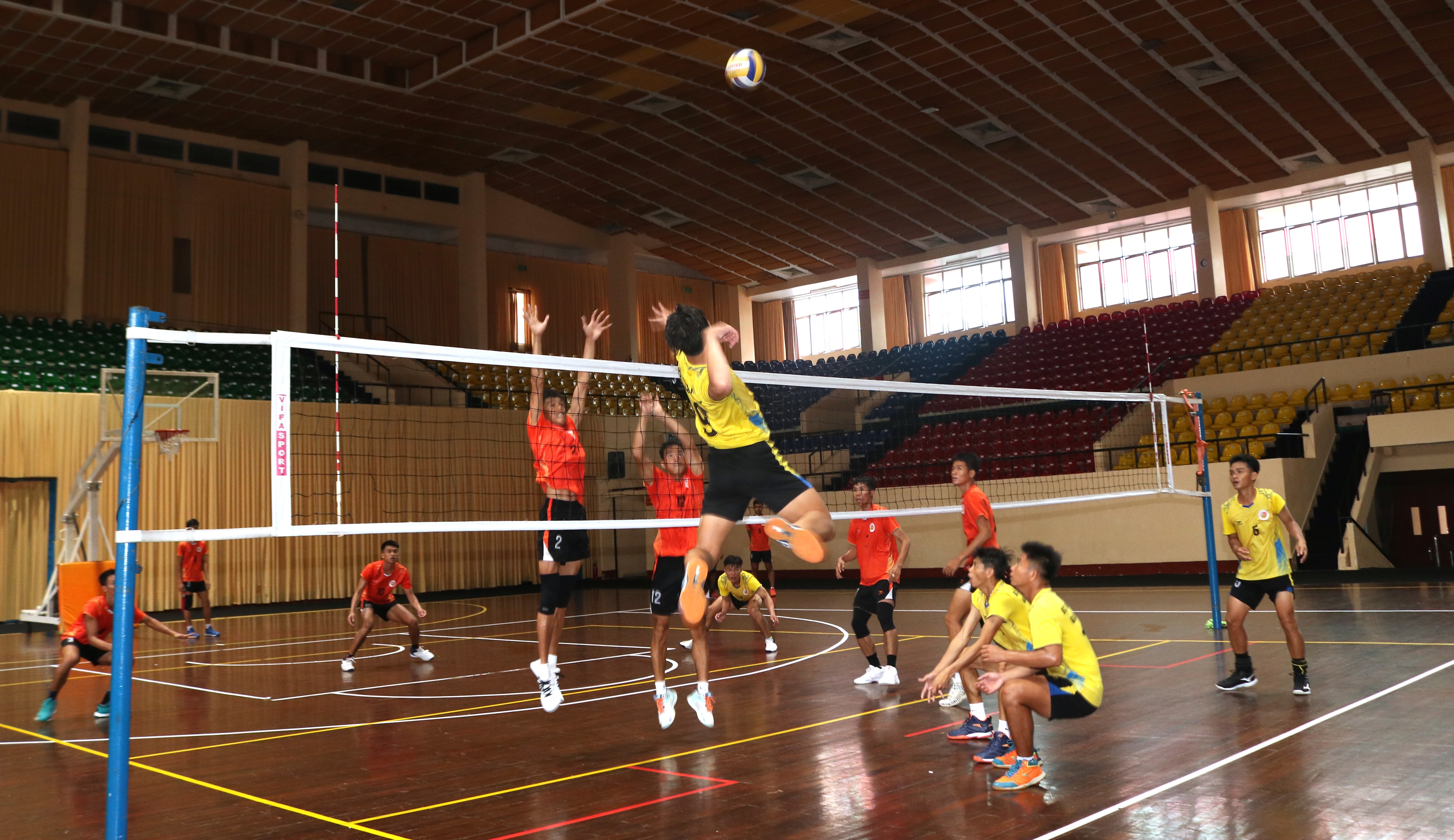 Các VĐV môn Bóng chuyền nỗ lực tập luyện.