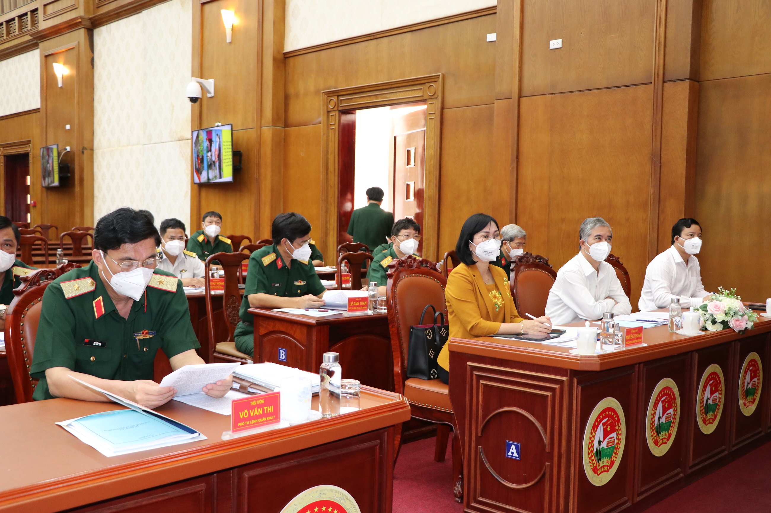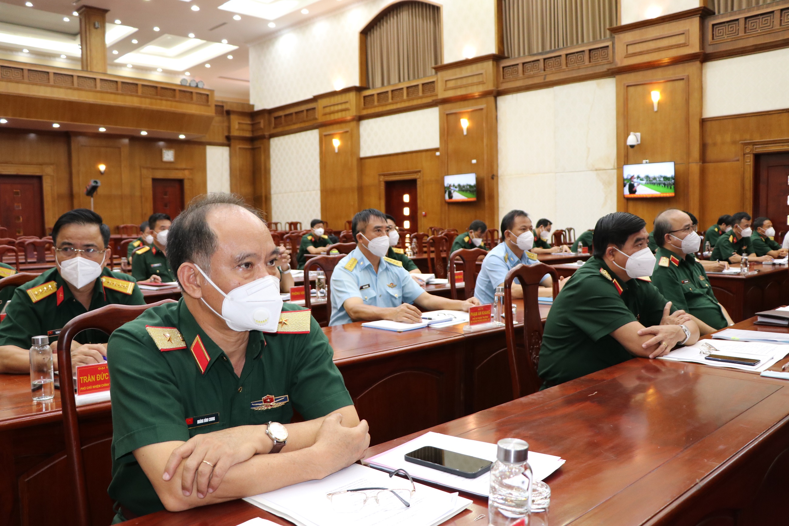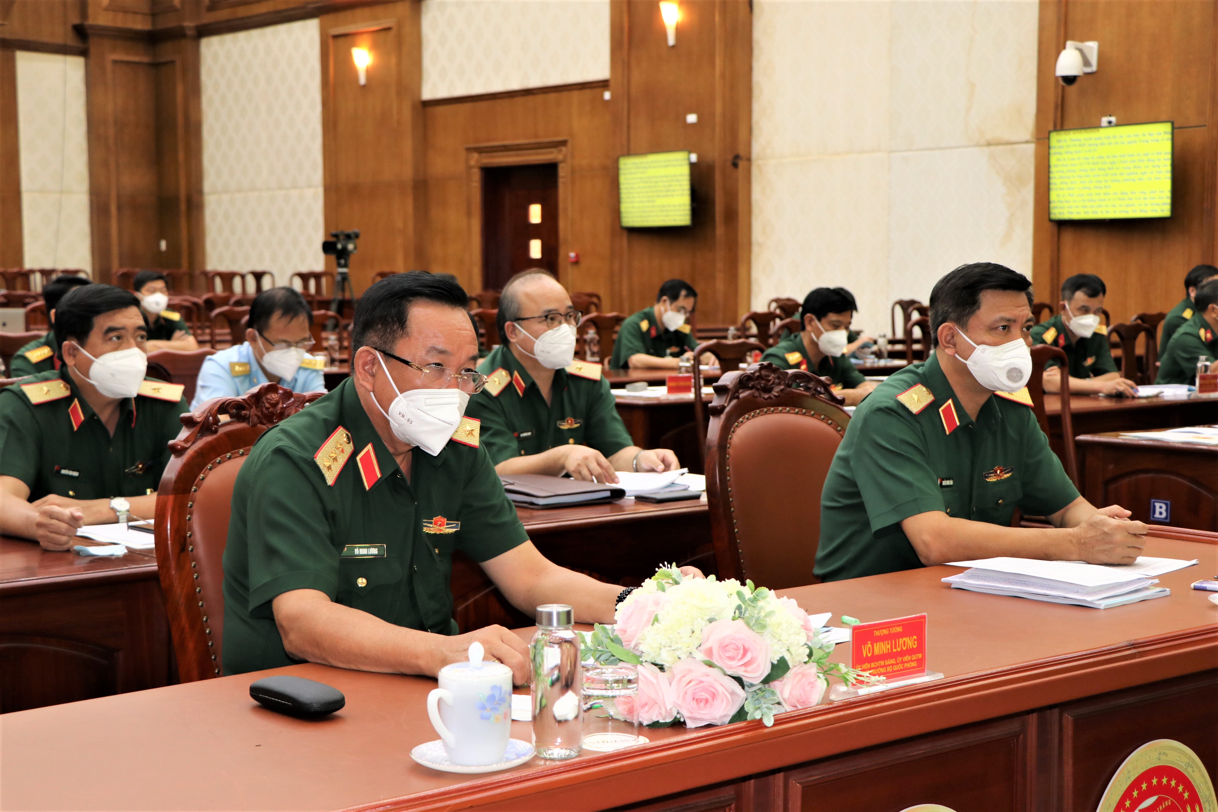 Thủ trưởng Bộ Tư lệnh Quân khu và lãnh đạo các địa phương dự hội nghị tại điểm cầu Quân khu 7.