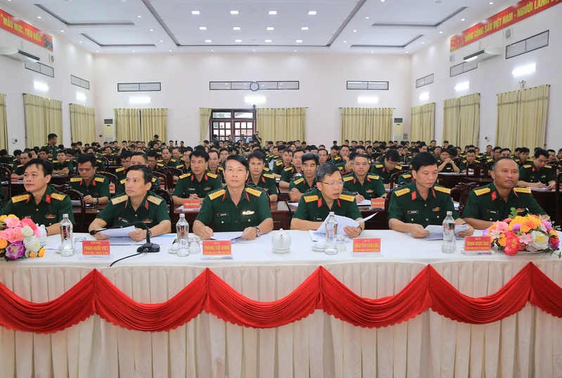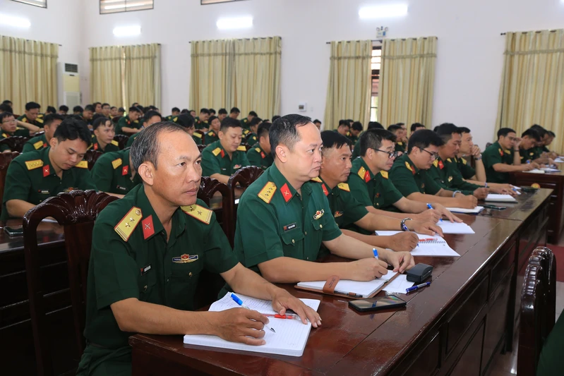 Cán bộ các cơ quan, đơn vị, địa phương, nhà trường trong LLVT Quân khu tham gia lớp tập huấn.
