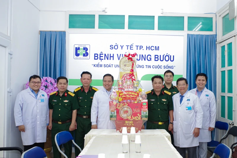Đại tá Nguyễn Hồng Cảnh cùng đoàn công tác đến thăm, chúc Tết Bệnh viện Ung bướu.