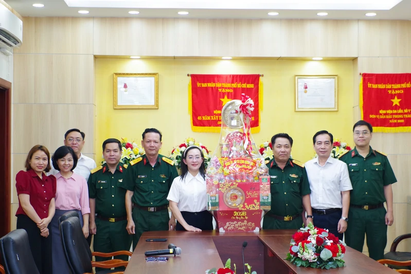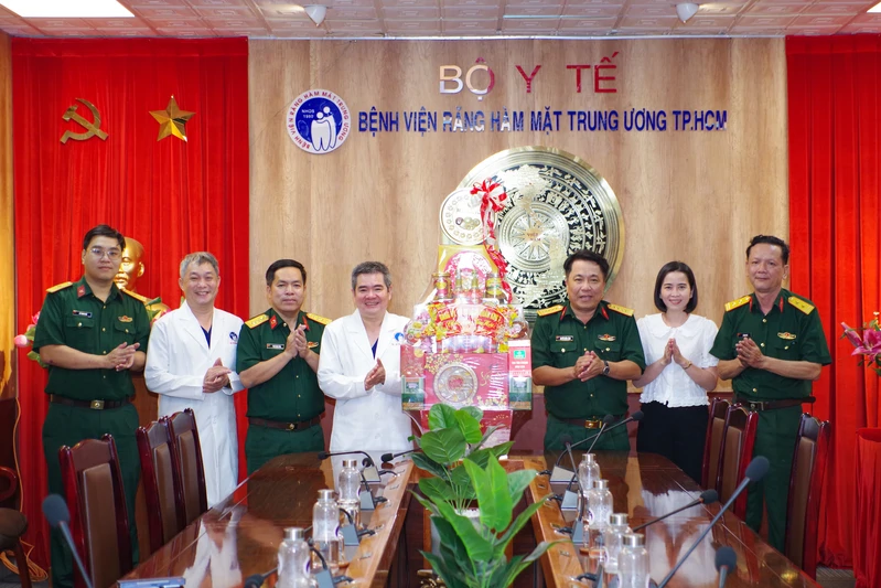 Đại tá Nguyễn Hồng Cảnh cùng đoàn công tác chúc Tết Bệnh viện Răng Hàm Mặt Trung ương TP. Hồ Chí Minh.