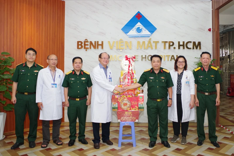 Đại tá Nguyễn Hồng Cảnh cùng đoàn công tác thăm, chúc Tết Bệnh viện Mắt TP. Hồ Chí Minh.